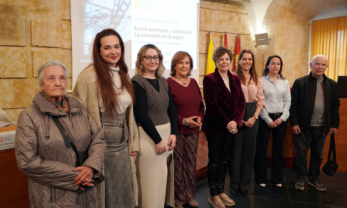 El Ayuntamiento de Salamanca y la Universidad Pontificia de Salamanca (UPSA) han presentado esta mañana el documental 'Entre sombras y silencios. Grabado en mayo de 2024, y producido y dirigido por los alumnos Malena Morán, Rafael Ordóñez, Miguel Castaño, Ainhoa Amaro y Marta Tardajos, recoge los testimonios de cuatro usuarios de ‘Salamanca Acompaña’ en el que narran sus vivencias e historias de vida y las oportunidades que han experimentado al formar parte del programa municipal, a través de un servicio de atención presencial y actividades durante toda la semana.
