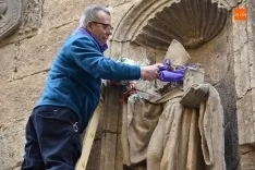 A continuación, los Amigos del Alguacilillo se acercaron a las puertas de la Iglesia de San Agustín, para cumplir con la 2ª parte de su tradición en cada Jueves de Casetas: colocarle el pañuelo de la entidad a la imagen de San Agustín que está en la fachada del templo, junto a un ramo de flores. Una vez colocados estos elementos, se dio lectura a la oración en la que se pide protección al Santo, lo que se repetirá cada tarde antes de los festivales y novilladas.