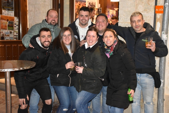 Junto a las tres zonas de casetas con las que cuenta Ciudad Rodrigo durante el Carnaval, en la noche del emblemático Jueves de Casetas también tuvieron animación como es lógico los establecimientos de hostelería (en uno de los cuales estaba tomando algo el grupo de la imagen), así como varios de los locales que funcionan como peñas en múltiples rincones de la ciudad.