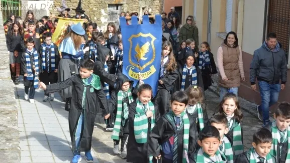 Niños y profesores del colegio Liminares animan las calles de Lumbrales con un desfile inspirado en el mundo de Harry Potter