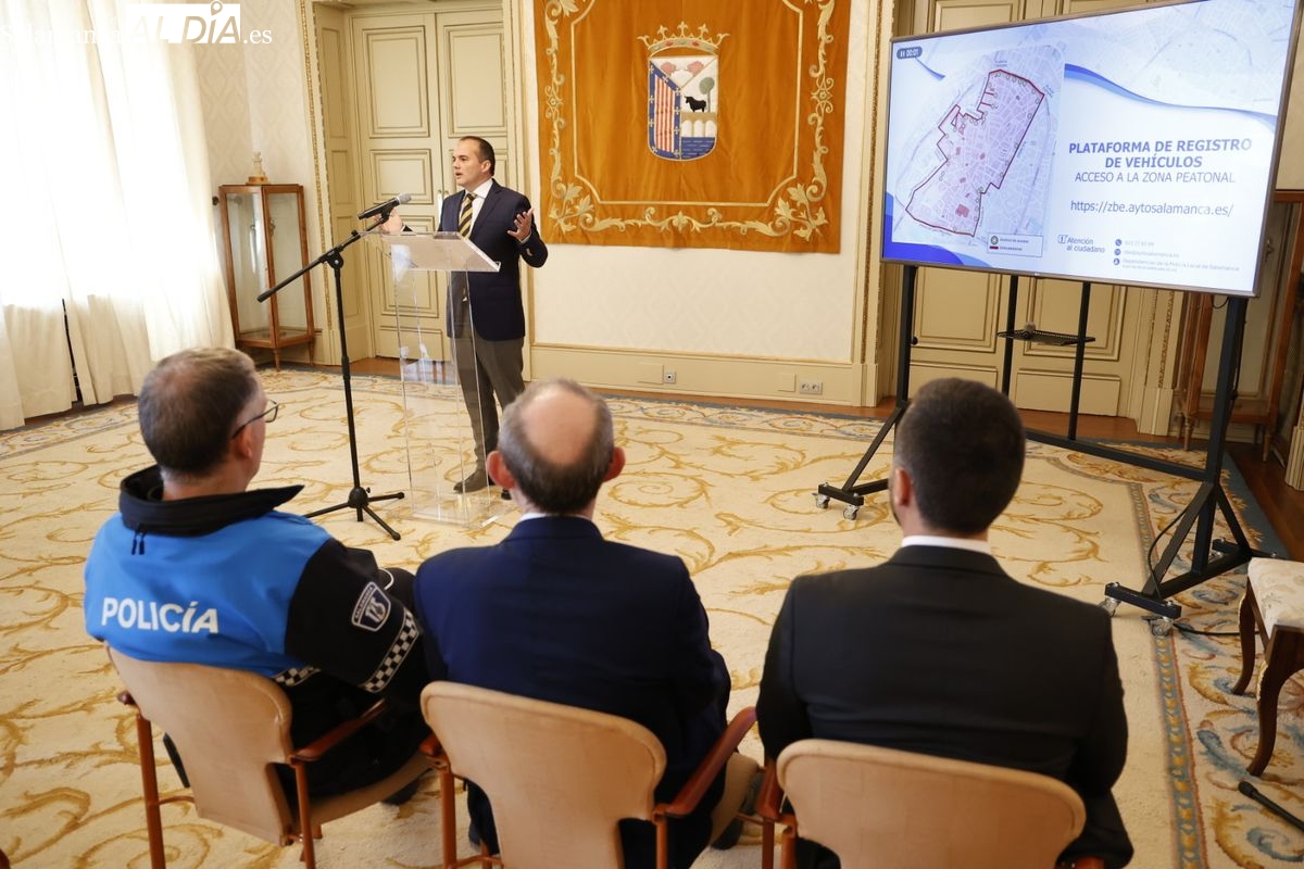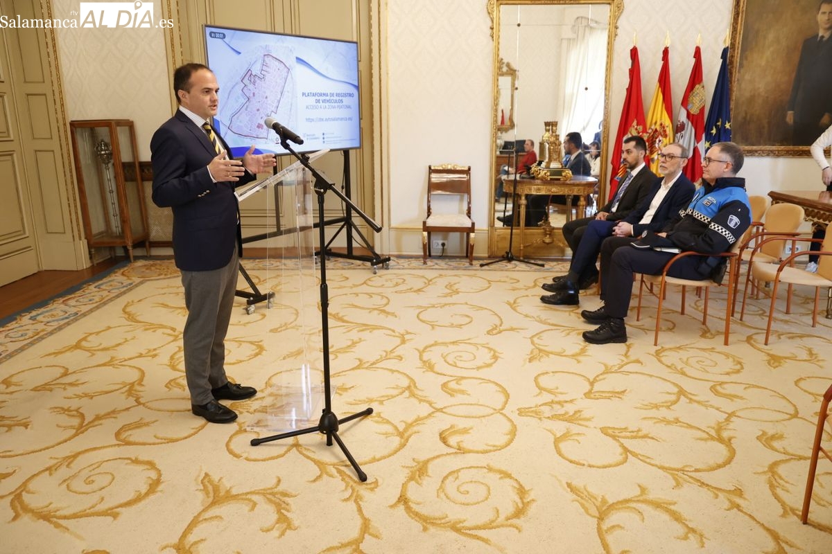 El Ayuntamiento de Salamanca pone en marcha la plataforma de registro de vehículos para acceder a las zonas peatonales del centro de la ciudad. El concejal de Tráfico y Transportes, Ángel Molina, ha presentado este sistema en el que los vecinos interesados se pueden registrar desde hoy aunque no se comenzarán a aplicar sanciones por accesos no justificados hasta el 1 de julio.