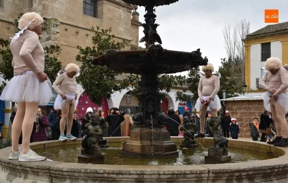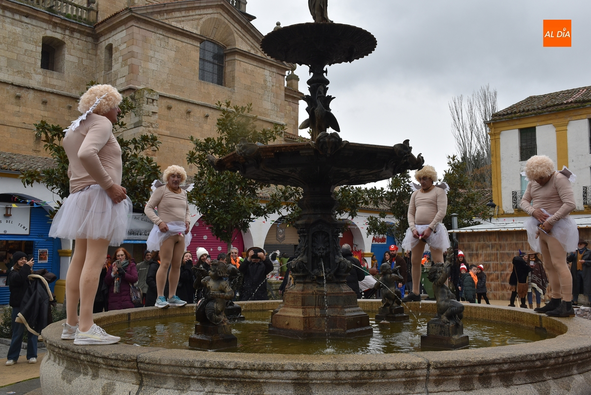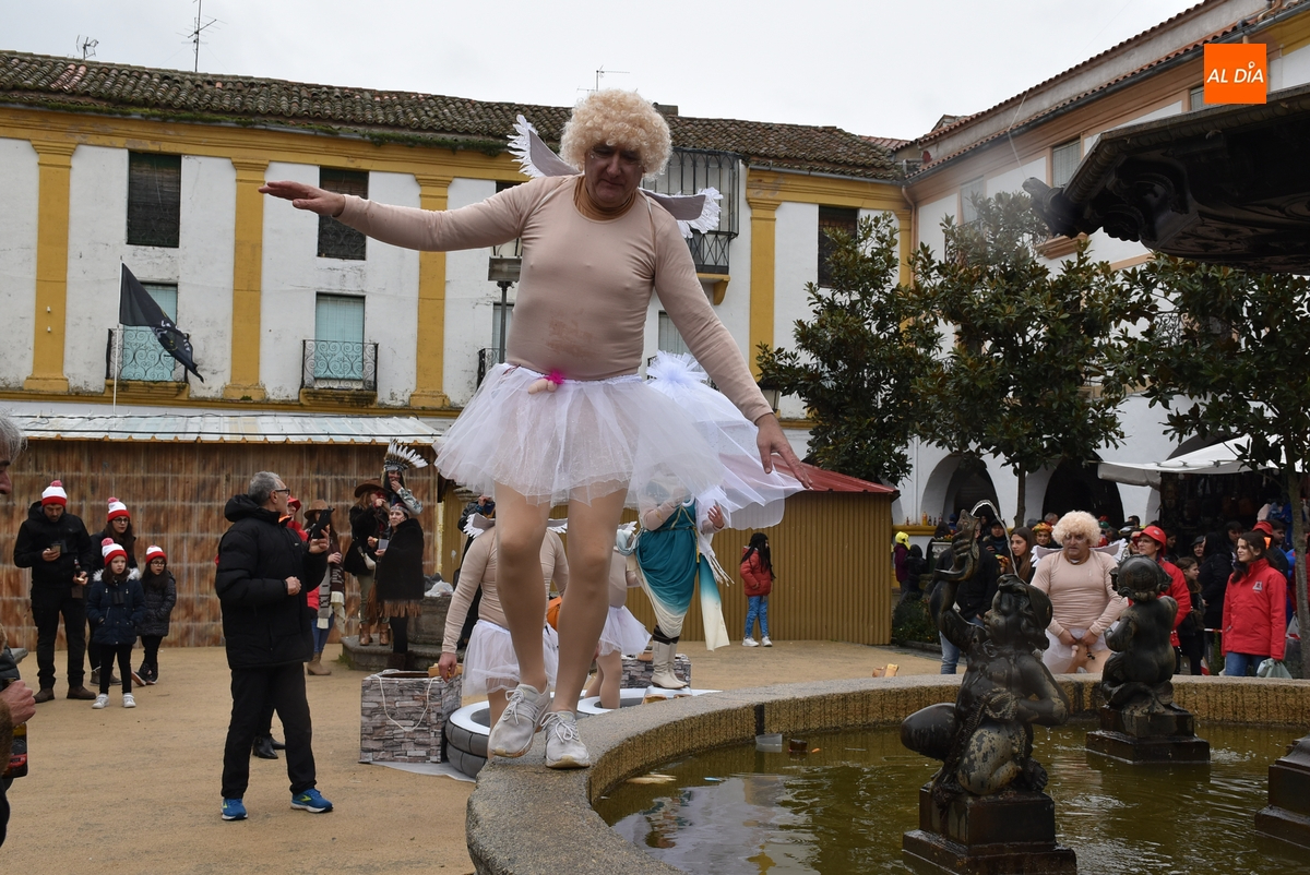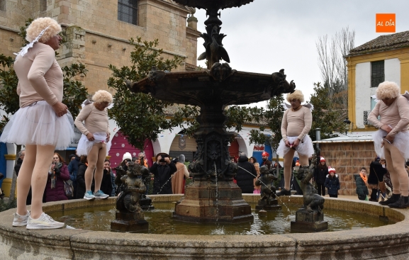 El desfile del concurso de Disfraz Callejero que tuvo lugar en el tramo final de la mañana del Sábado de Carnaval contó con lo que se puede considerar un ‘bonus track’ por parte de los ‘Angelitos de la Fuente’, que se fueron a recrear la escena que habían mostrado en la Plaza Mayor en la propia Plazuela del Buen Alcalde donde está situada la citada fuente.