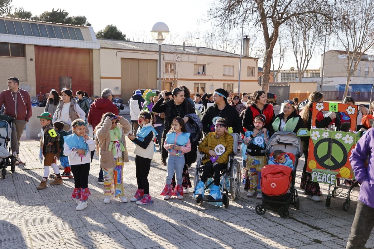 FOTOS | Hippies, gallinas, pavos reales... Los vecinos de El Rollo-Puente Ladrillo celebran el Carnaval a ritmo de charanga