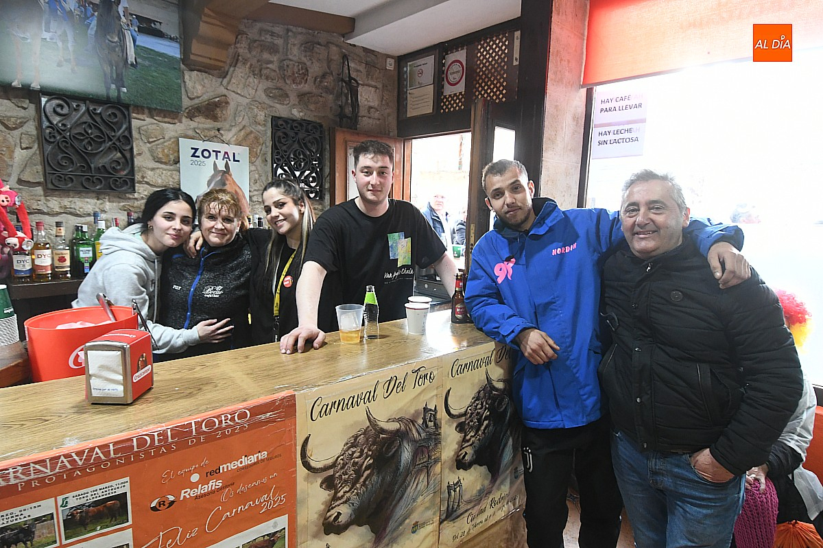 En la tarde noche del martes de Carnaval se despedían los equipos de camareros que han trabajado juntos durante cinco días. Muchos mirobrigenses aprovechaban las últimas horas de carnestolendas tras terminar la programación taurina y el pasacalles de cenizos, para despedir con tristeza y a la vez alivio el Carnaval del Toro 2025