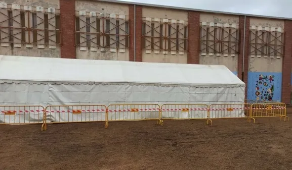 Como se puede ver en las imágenes, la carpa, así como un generador, están rodeados por vallas, para que los chavales no puedan llegar a los mismos, no ocurriendo lo mismo al menos en el momento de entrar los alumnos a las 9.00 horas del jueves con una serie de contenedores de residuos sólidos urbanos, que estaban además totalmente repletos de bolsas de basura.