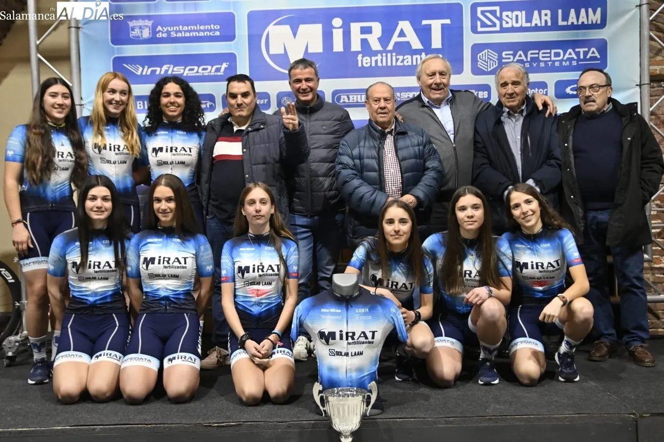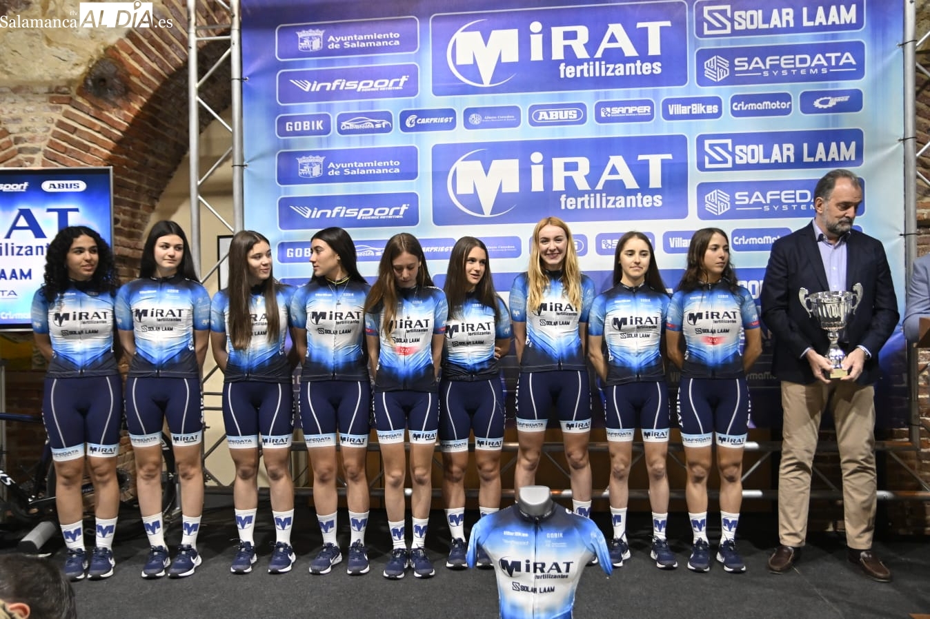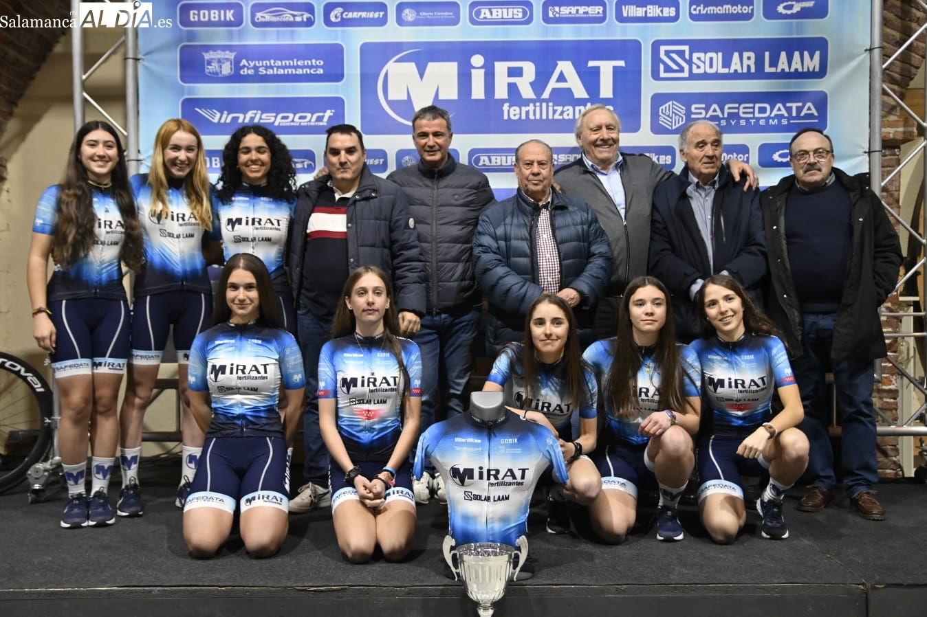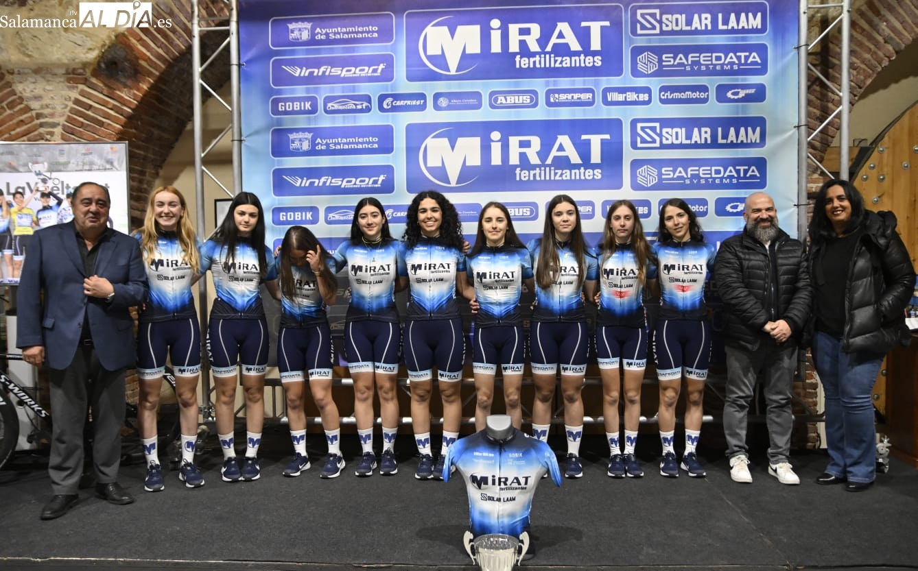 Exitosa presentación de los equipos ciclistas del Mirat Team con la ilusión por bandera. Asimismo, el acto se ha llevado a cabe en las Naves Almidón Fábrica Mirat, ubicadas en la avenida de la Aldehuela, y ha contado con la presencia de los corredores.