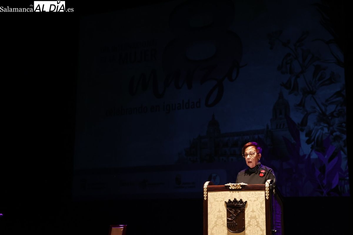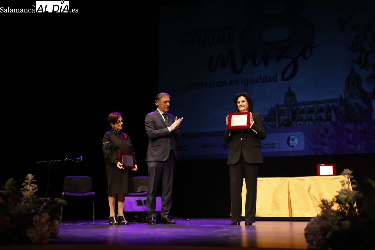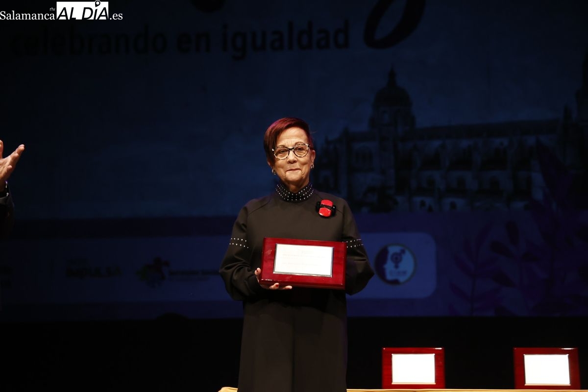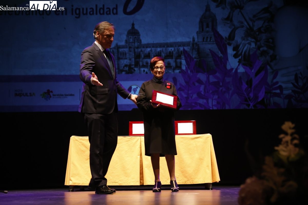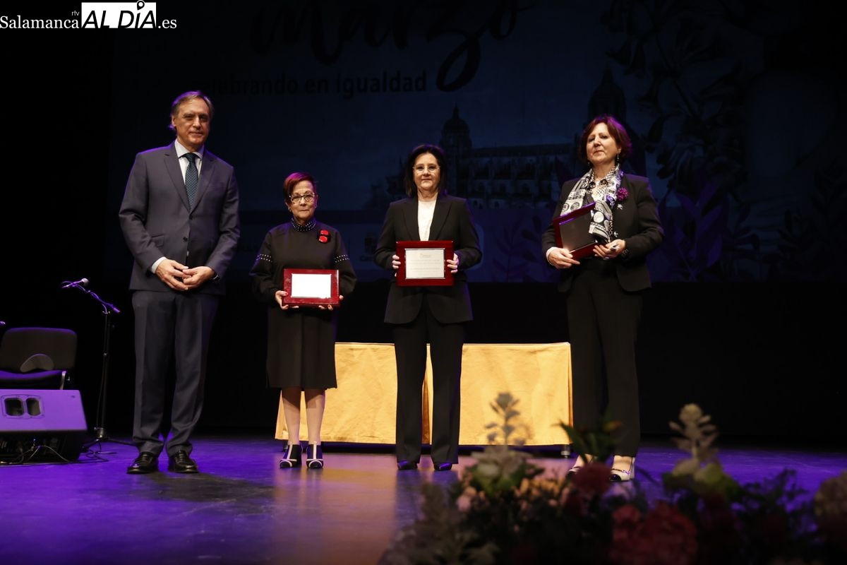 Emotivo y bonito homenaje a tres mujeres salmantinas con motivo del Día de la Mujer, que se celebra cada 8 de marzo. Con un teatro Liceo a rebosar, Salamanca ha rendido este viernes un reconocimiento a Ascensión Iglesias, María Patrocinio Rodríguez y Teresa Peramatos por su gran trayectoria profesional.