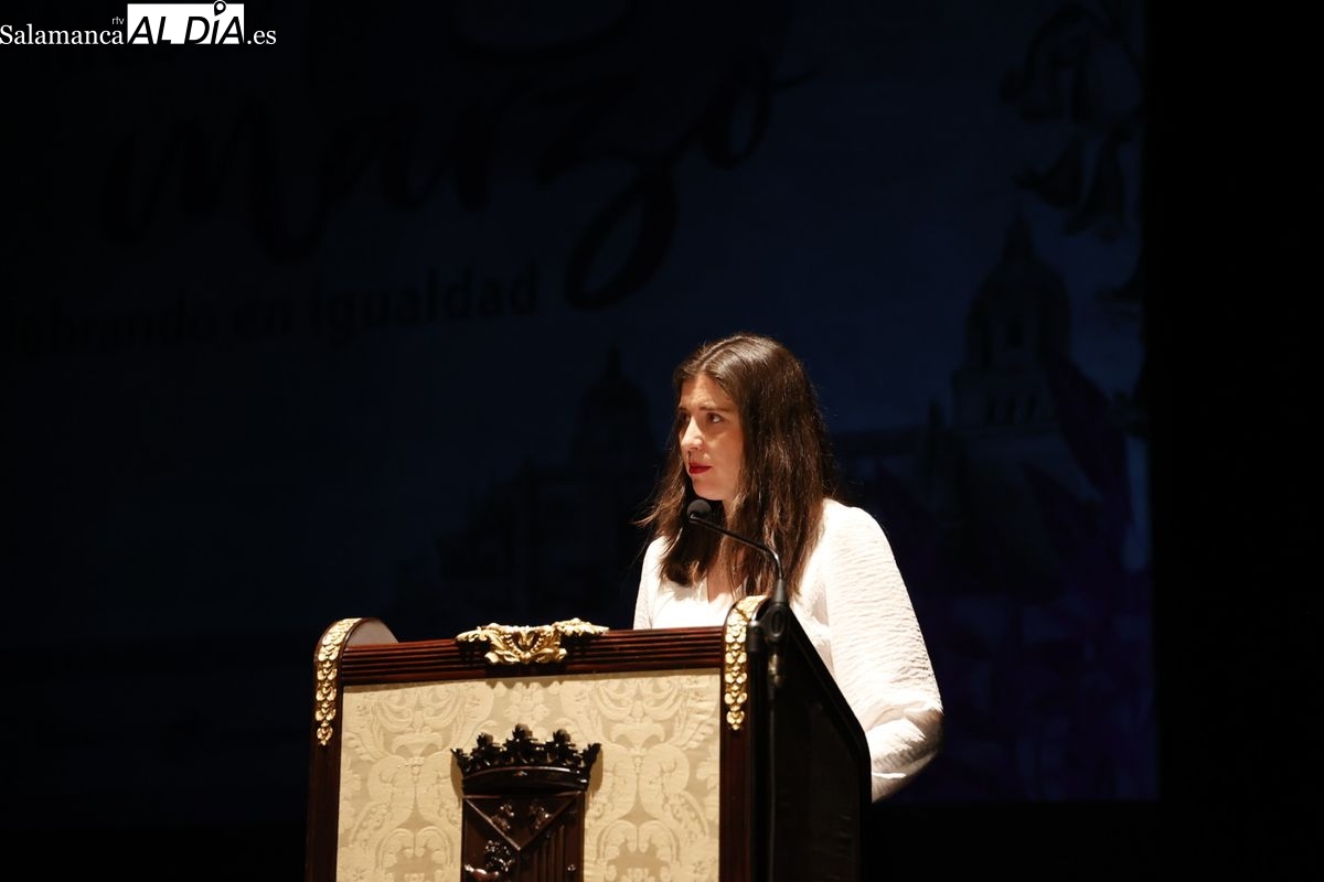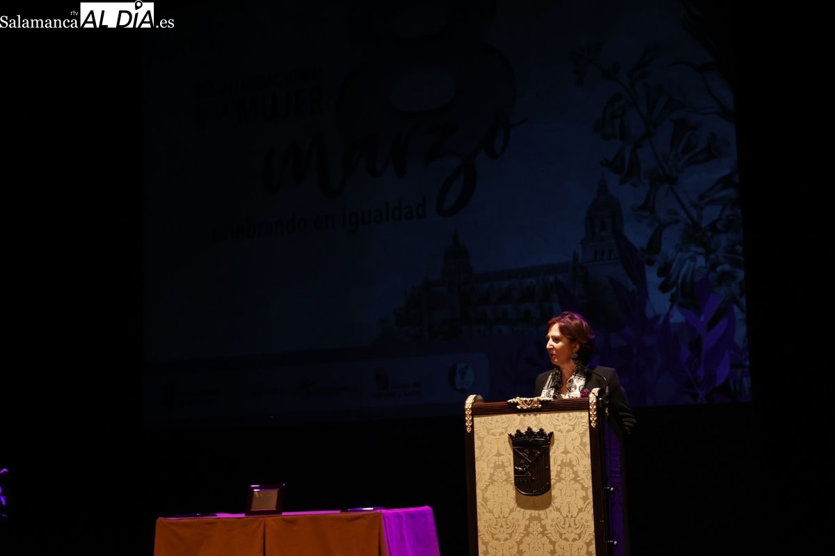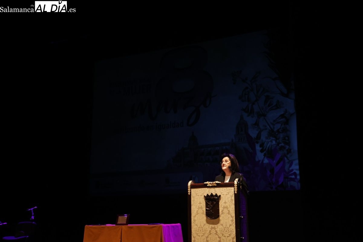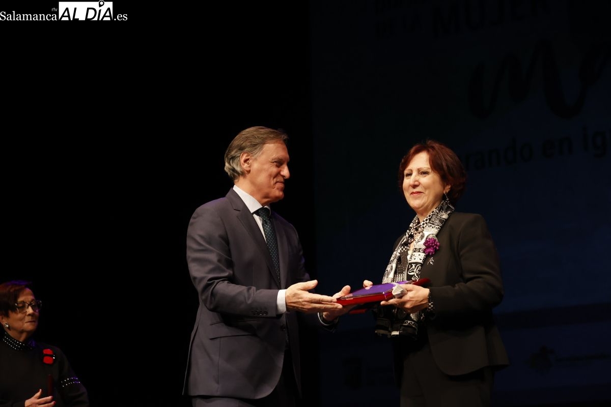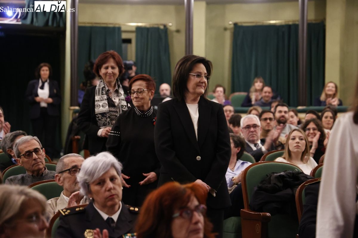 Emotivo y bonito homenaje a tres mujeres salmantinas con motivo del Día de la Mujer, que se celebra cada 8 de marzo. Con un teatro Liceo a rebosar, Salamanca ha rendido este viernes un reconocimiento a Ascensión Iglesias, María Patrocinio Rodríguez y Teresa Peramatos por su gran trayectoria profesional.