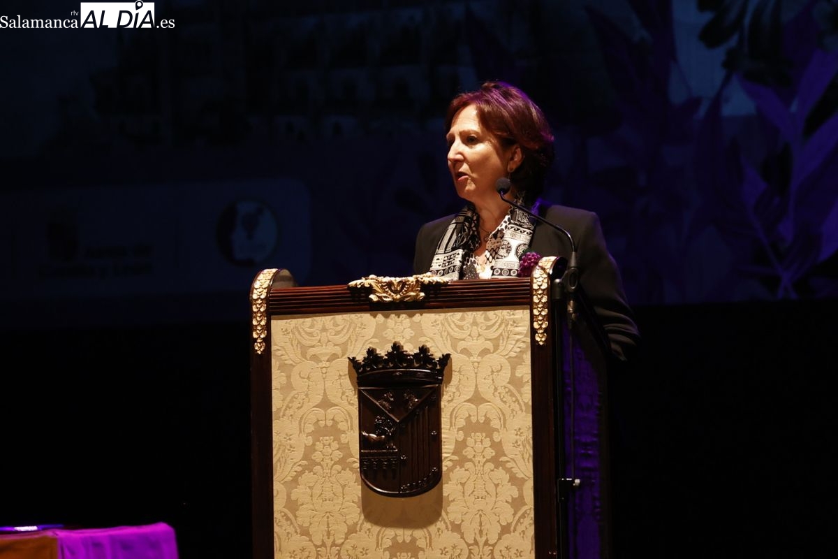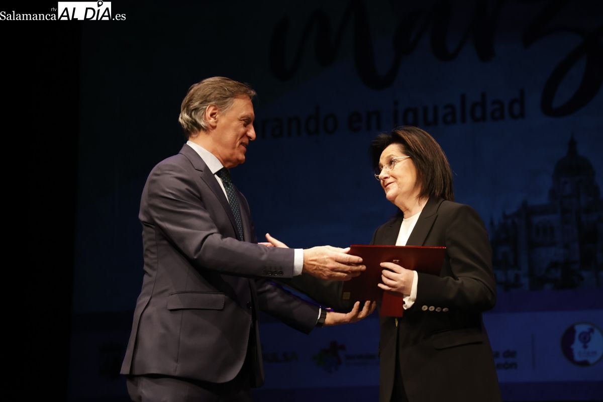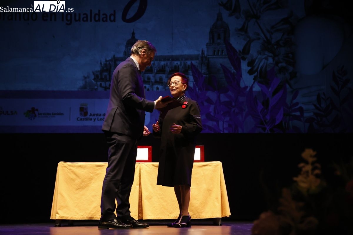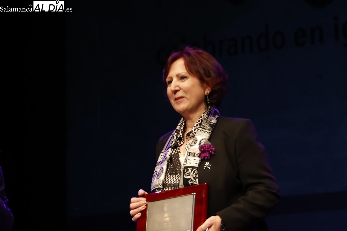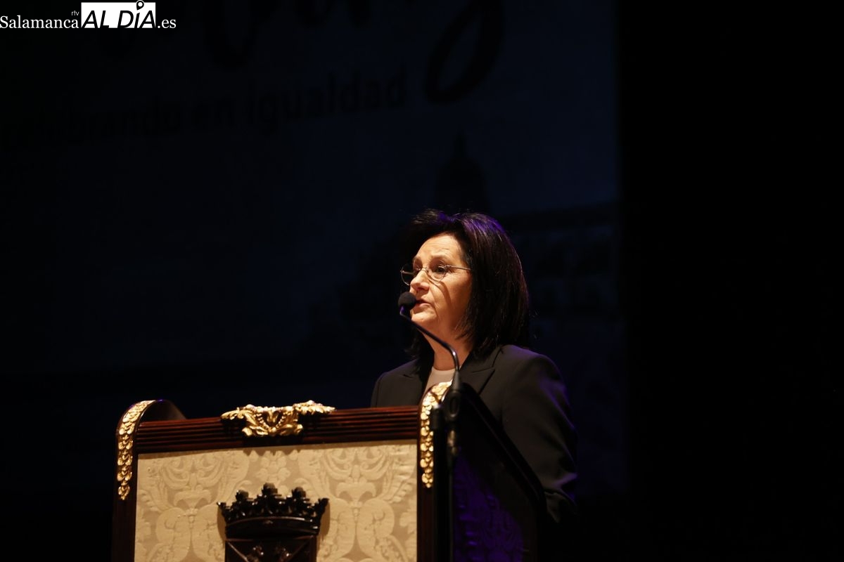 Emotivo y bonito homenaje a tres mujeres salmantinas con motivo del Día de la Mujer, que se celebra cada 8 de marzo. Con un teatro Liceo a rebosar, Salamanca ha rendido este viernes un reconocimiento a Ascensión Iglesias, María Patrocinio Rodríguez y Teresa Peramatos por su gran trayectoria profesional.