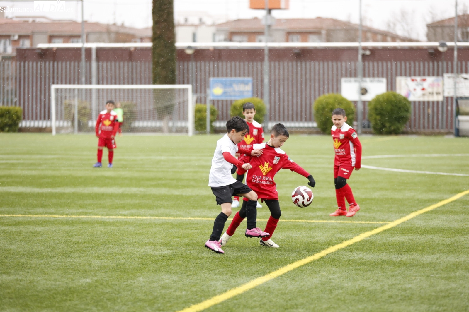 El fútbol base de Salamanca desafía a la lluvia en una jornada de vuelta a la normalidad tras los Carnavales (FOTOS)