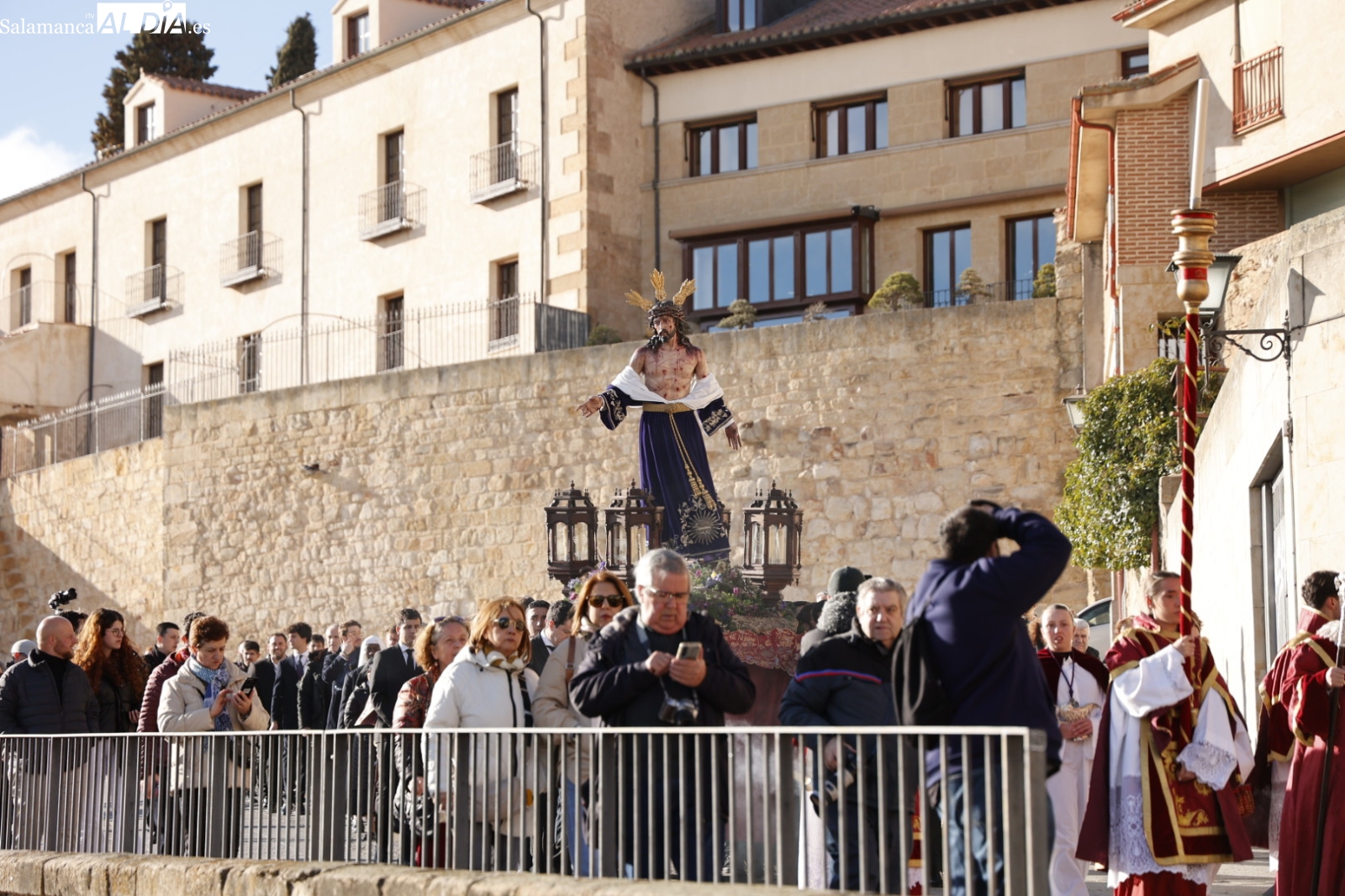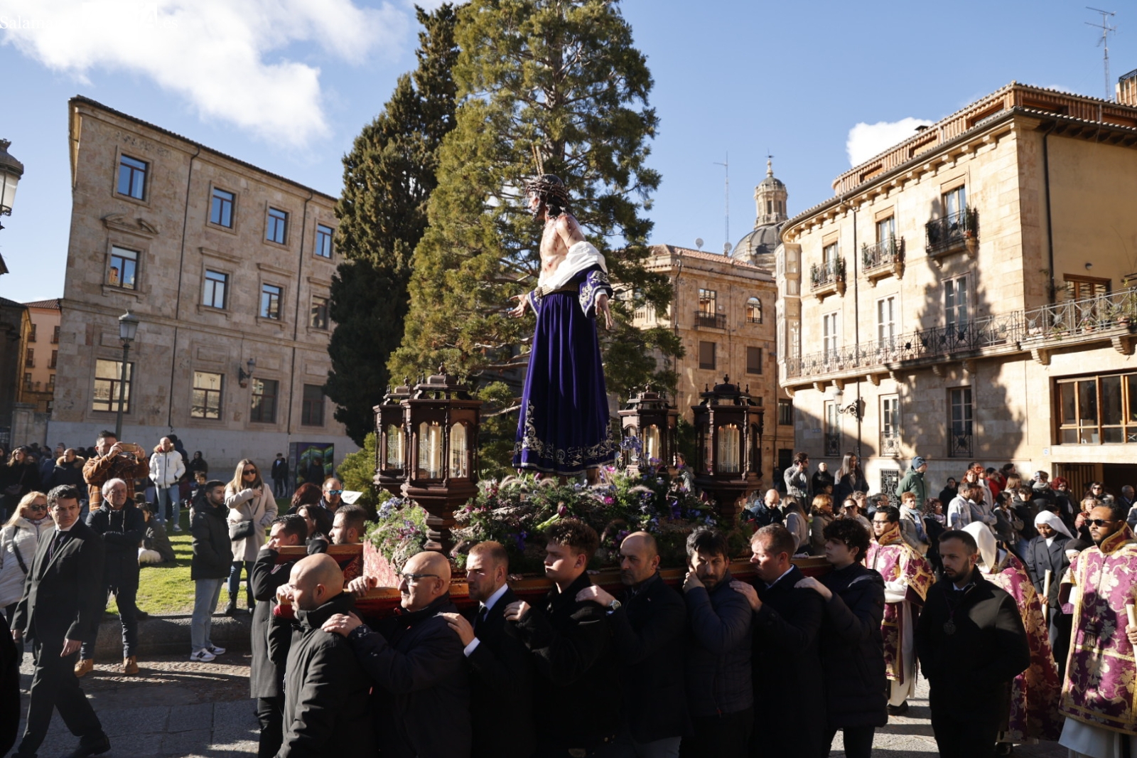 Este año, el Vía Crucis tuvo un carácter especial con motivo del Año Jubilar ‘Peregrinos de Esperanza’, proclamado por el Papa Francisco con el lema “la esperanza no defrauda” (Rm 5,5). A lo largo del recorrido, la imagen de Jesús Despojado visitó puntos emblemáticos como la Casa-Escuela Santiago Uno, el Colegio Sagrado Corazón ‘Jesuitinas’ y la Iglesia del Carmen de Abajo, entre otros. El cortejo estuvo acompañado por el coro de la hermandad, ‘Regina Coeli’, y música de capilla, que interpretó saetas compuestas por José Ignacio Cotobal Robles.