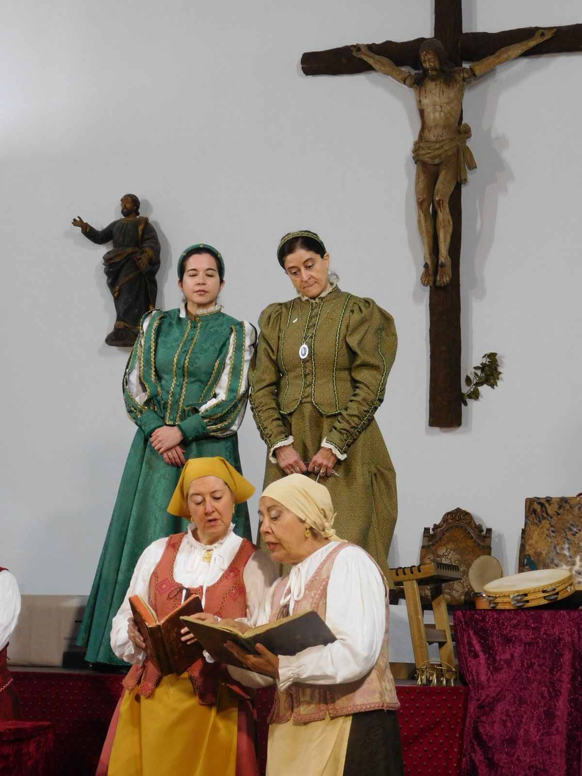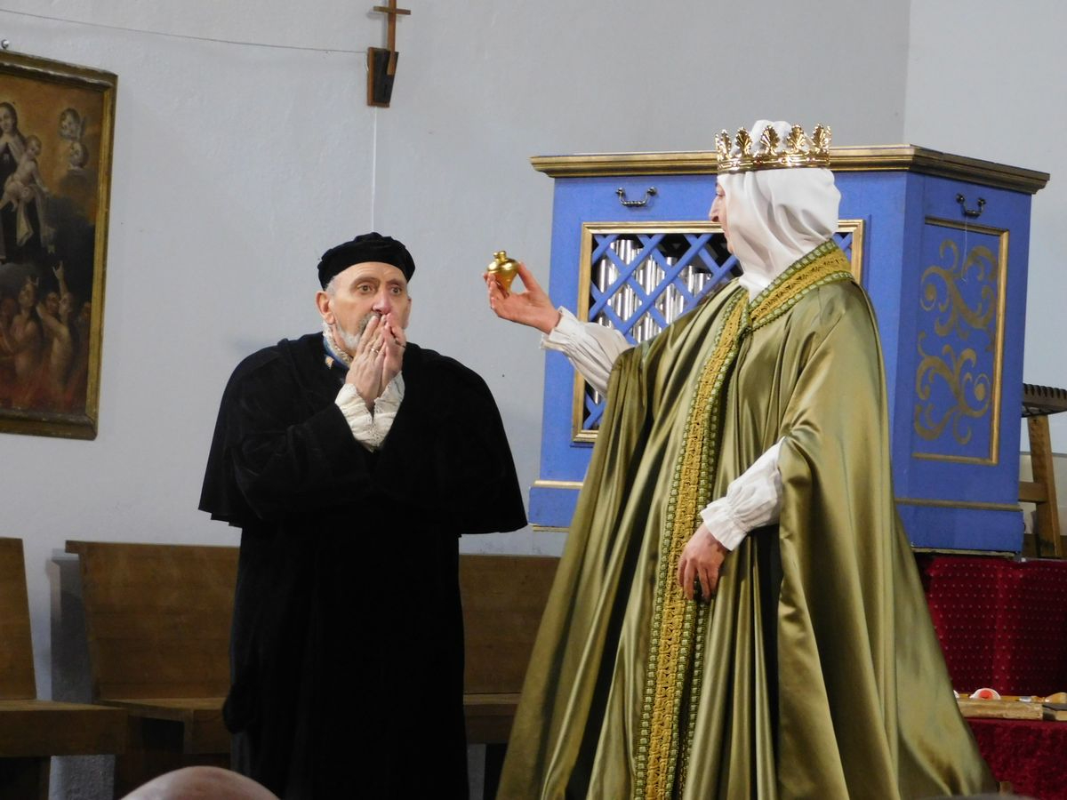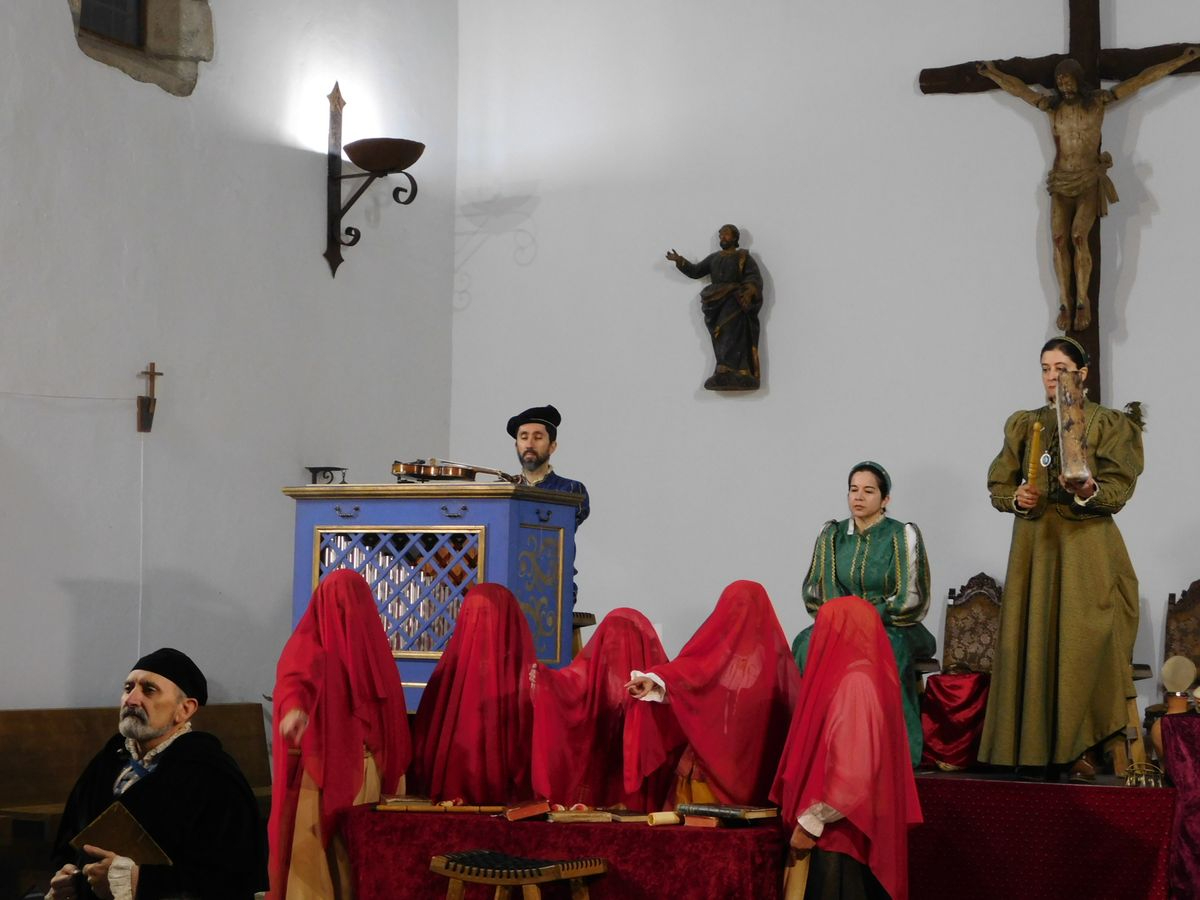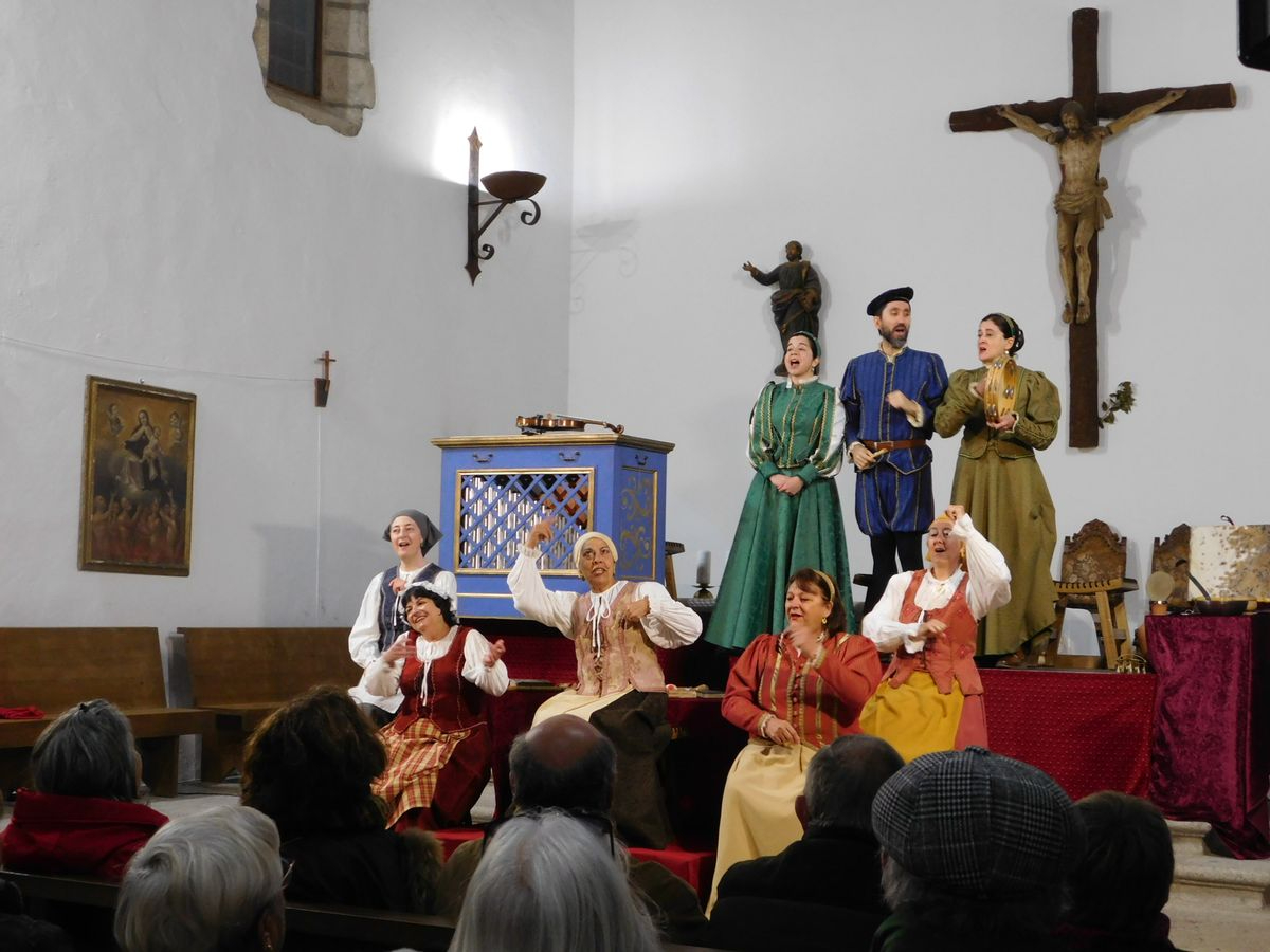 El elenco formado por siete mujeres y dos hombres trasladaron al público mirandeño al Siglo de Oro, donde el autor de la Gramática Castellana refleja su lucha incansable por ganar, dominar, conquistar y vencer a la ignorancia e incultura reinante en su época. La magnífica acústica del templo, gracias a su techumbre de madera, hizo que también brillara la música de Juan del Encina, alumno de Nebrija, interpretada en directo con todo tipo de instrumentos y voces que nos transportan a esa época.