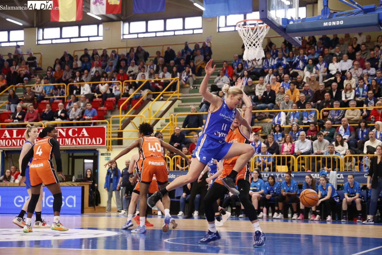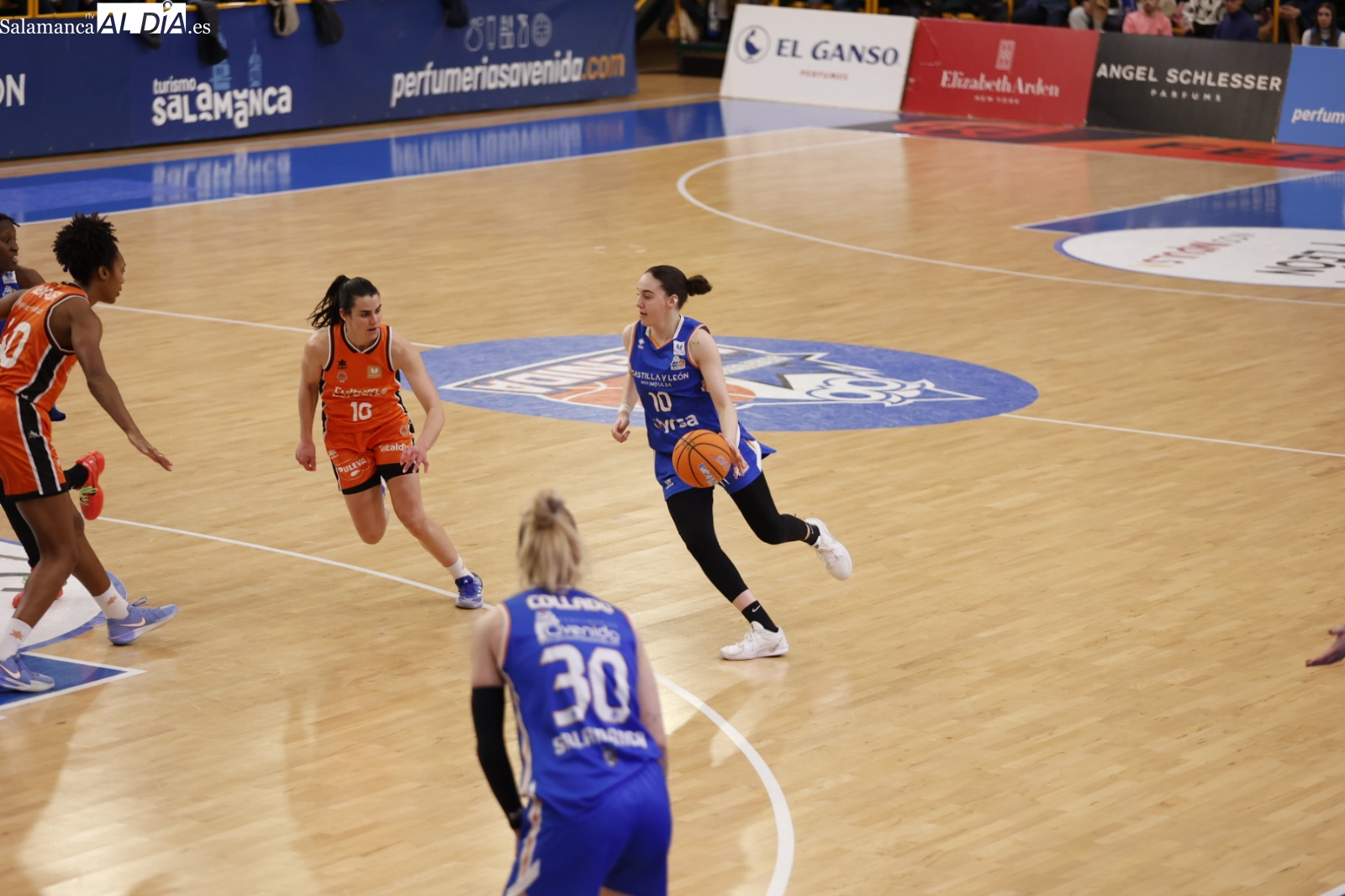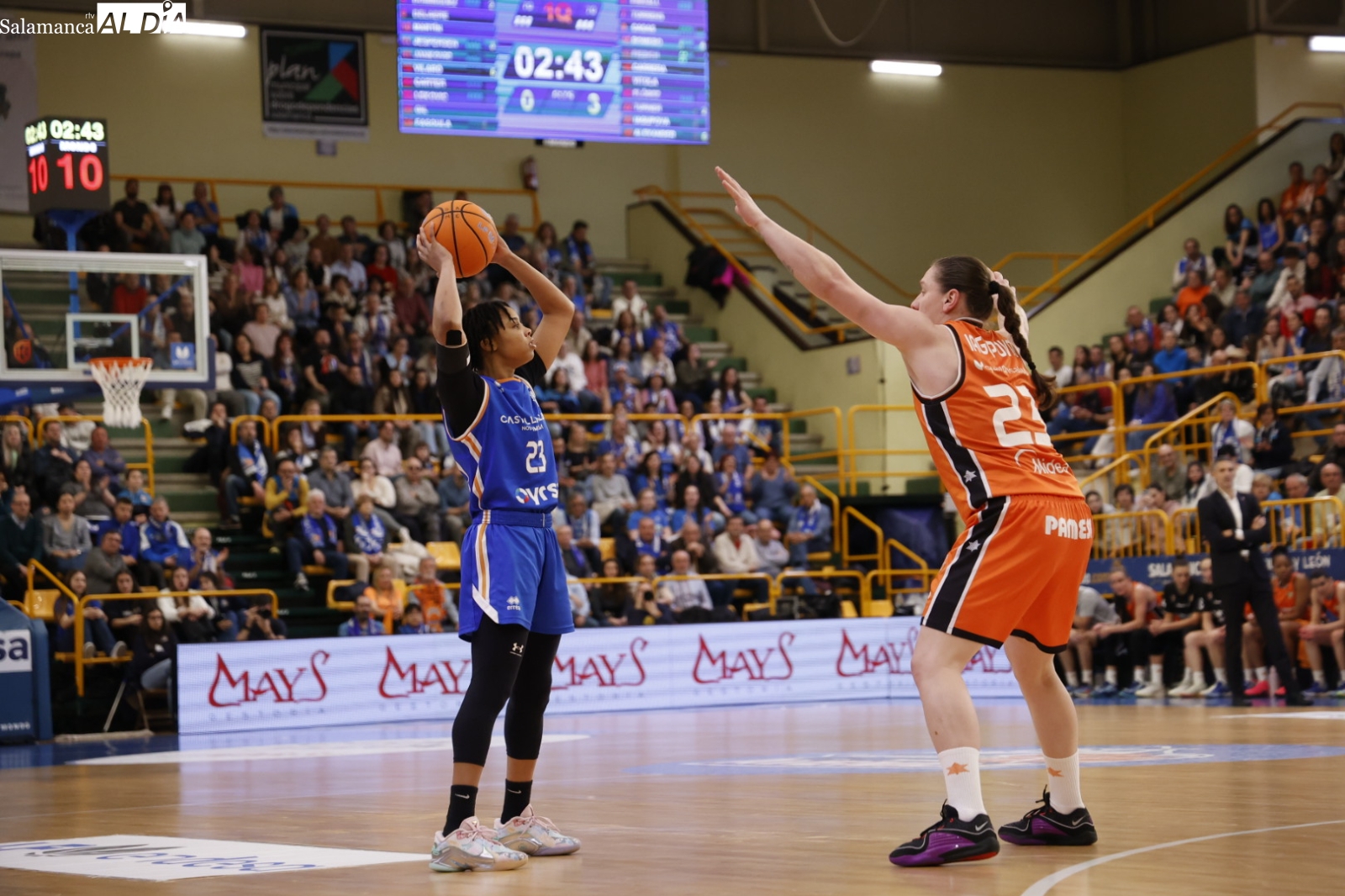 En la alineación, Montañana ha decidido confiar en Iyana, Vilaró, Jespersen, Gil y Koné. En el primer cuarto, la intensidad no ha tardado en hacerse notar. La diferencia de un solo punto, 16-17 a favor de Valencia, ha dejado claro que este iba a ser un duelo reñido. Vilaró, con su destreza, ha sido la máxima anotadora de las charras, mientras que Alexander se ha encargado de liderar a las valencianas. El inicio del partido mostró una gran paridad, con canastas de ambos lados, un triple de Jespersen y el eficaz control en la pintura de la poderosa Alexander.