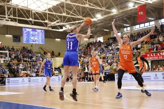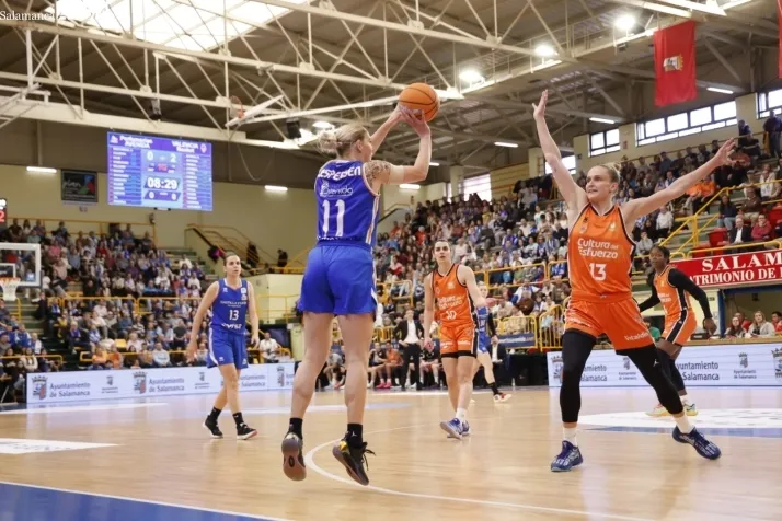 El Perfumerías Avenida ha ganado al Valencia Basket en un final de infarto y tiene el liderato a tiro (76-73). Un triplazo de Silvia Domínguez ha decidido el partido y ha puesto a las de Salamanca a un triunfo de las taronjas en Liga a pocas semanas de la Copa.