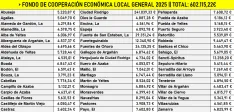 El conjunto de la comarca recibirá este año 602.115,22€ del Fondo de Cooperación Económica Local