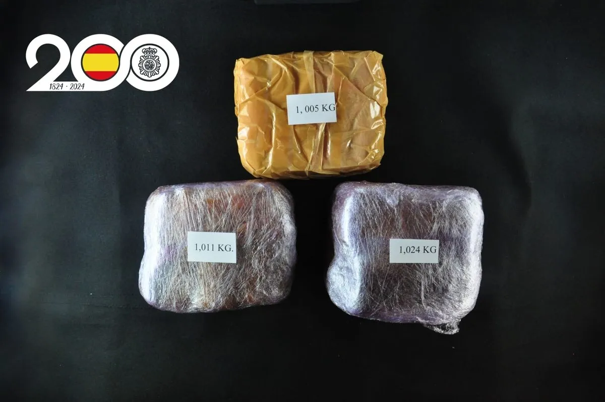 Una vez inspeccionada la bolsa liberada por el varón para conseguir su fuga, se comprueba que la misma contiene tres paquetes de sustancia vegetal de color marrón 'hachís', dando a posterioridad un peso de 3 kilos.