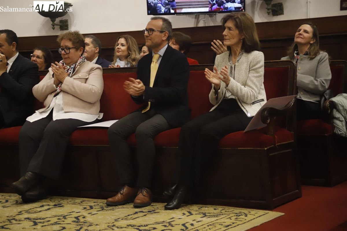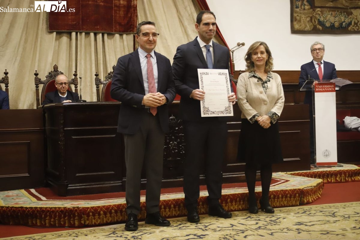 Al acto asistieron también los vicerrectores de Investigación, José Miguel Mateos Roco; de Grado y Calidad, Bertha María Gutiérrez Rodilla; y de Transferencia, Innovación y Emprendimiento, Federico Bueno de Mata, mientras que el secretario general, Alfredo Ávila de la Torre, fue el encargado de llamar a los galardonados.