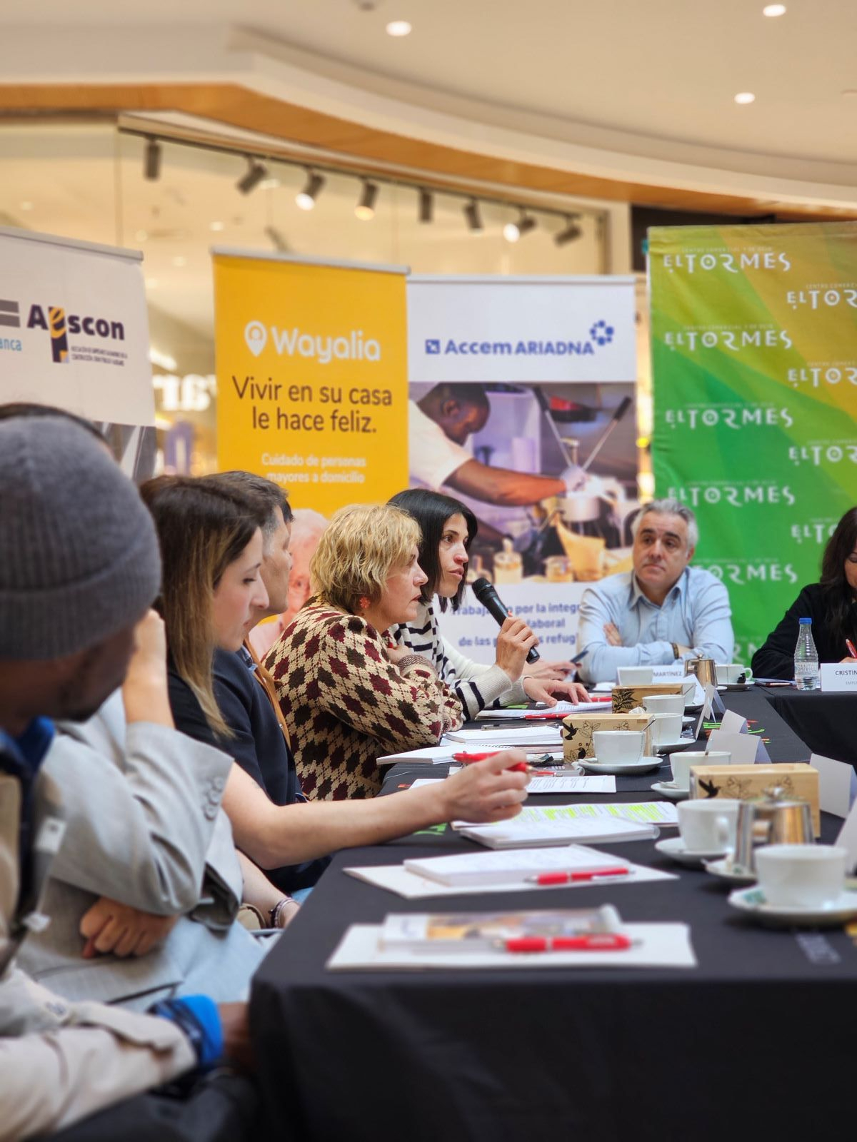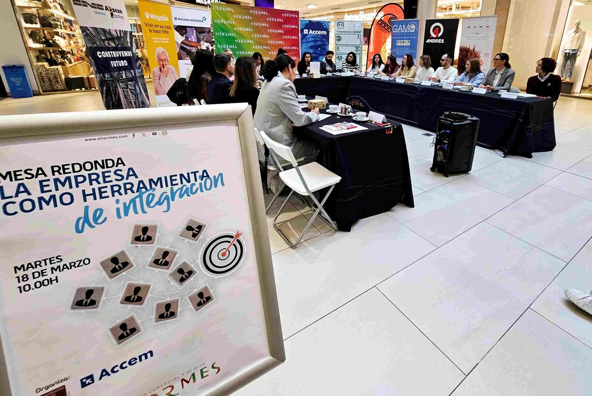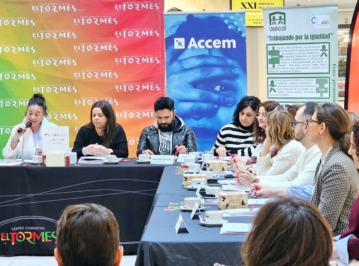 Esta mañana, con motivo del Día Mundial del Trabajo Social, el Centro Comercial El Tormes ha sido el escenario de la mesa redonda 'La empresa como herramienta de integración', un evento organizado por Accem en colaboración con la Fundación General de la Universidad de Salamanca. Un espacio de diálogo en el que empresas, entidades, agentes sociales y personas migrantes han compartido su visión sobre el papel fundamental del tejido empresarial en los procesos de inclusión social y laboral.