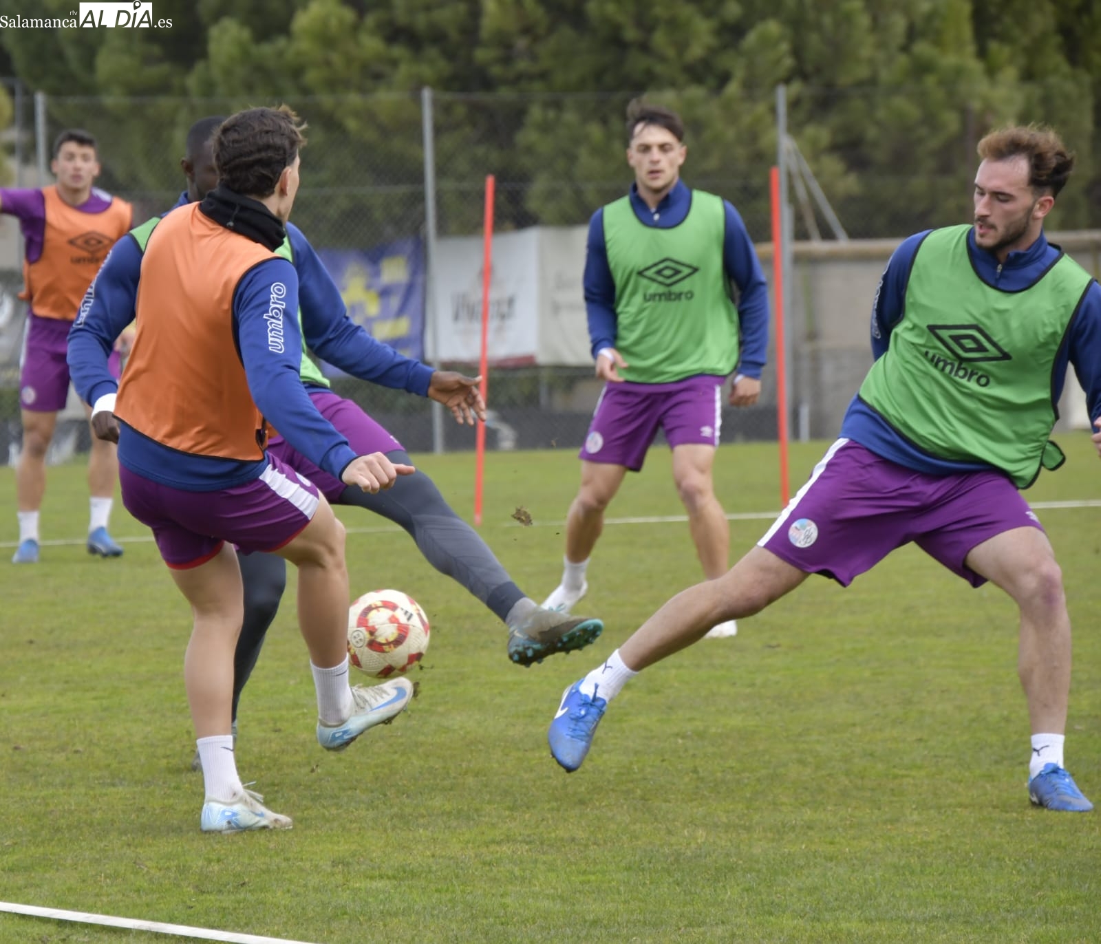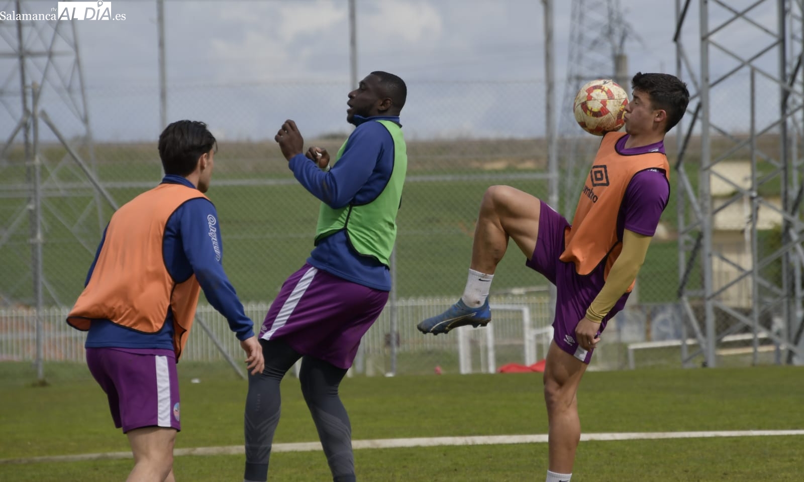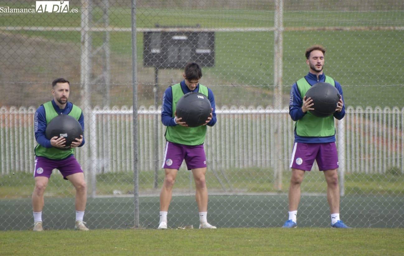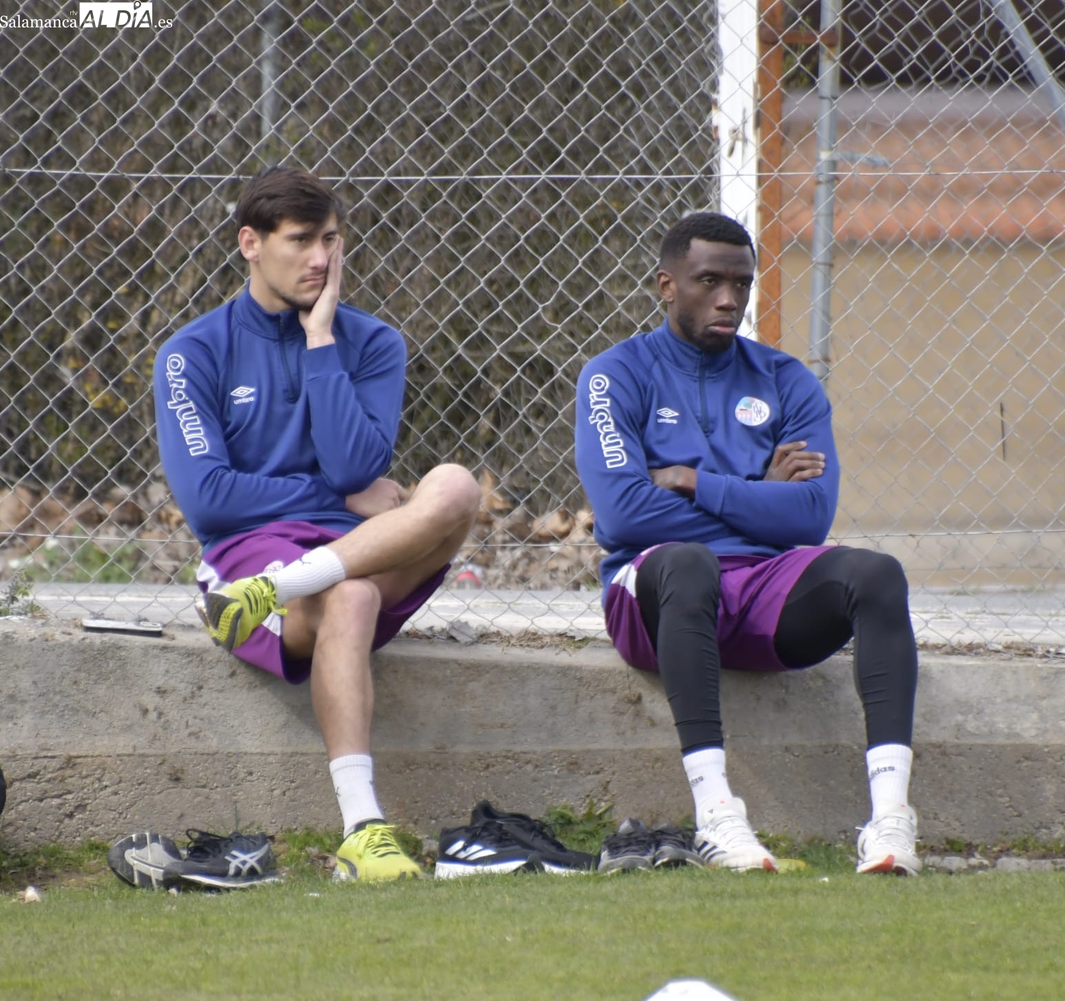 Juancho ha vuelto a los entrenamientos del Salamanca UDS... pero Curro y Emaná siguen lesionados, motivo por el que no se han ejercitado con el resto de sus compañeros en la primera sesión de entrenamiento tras el día de descanso semanal.