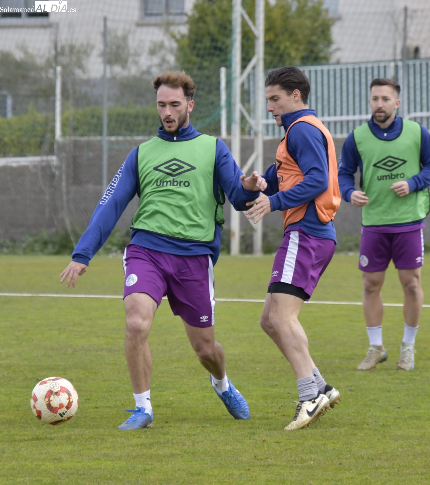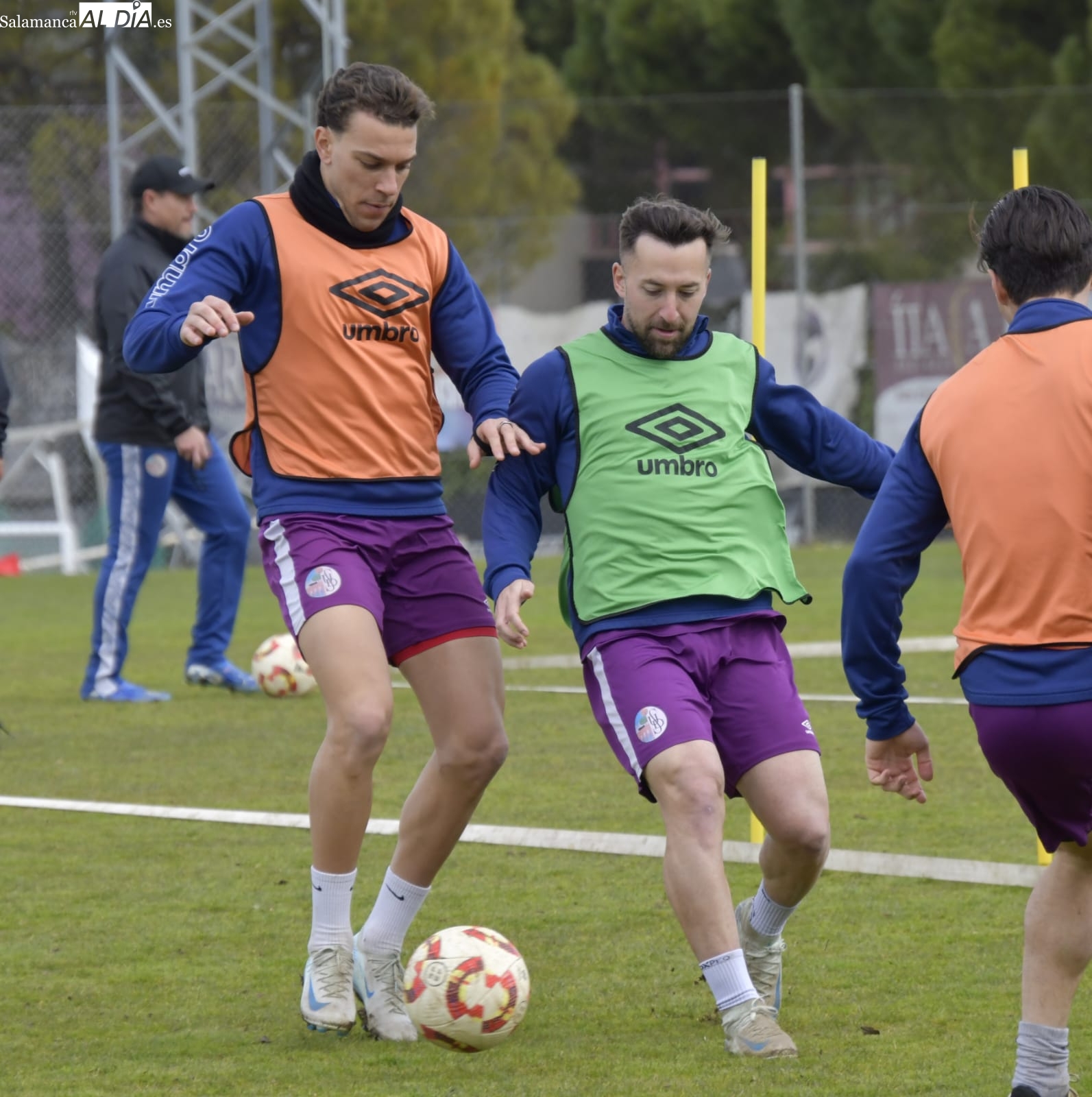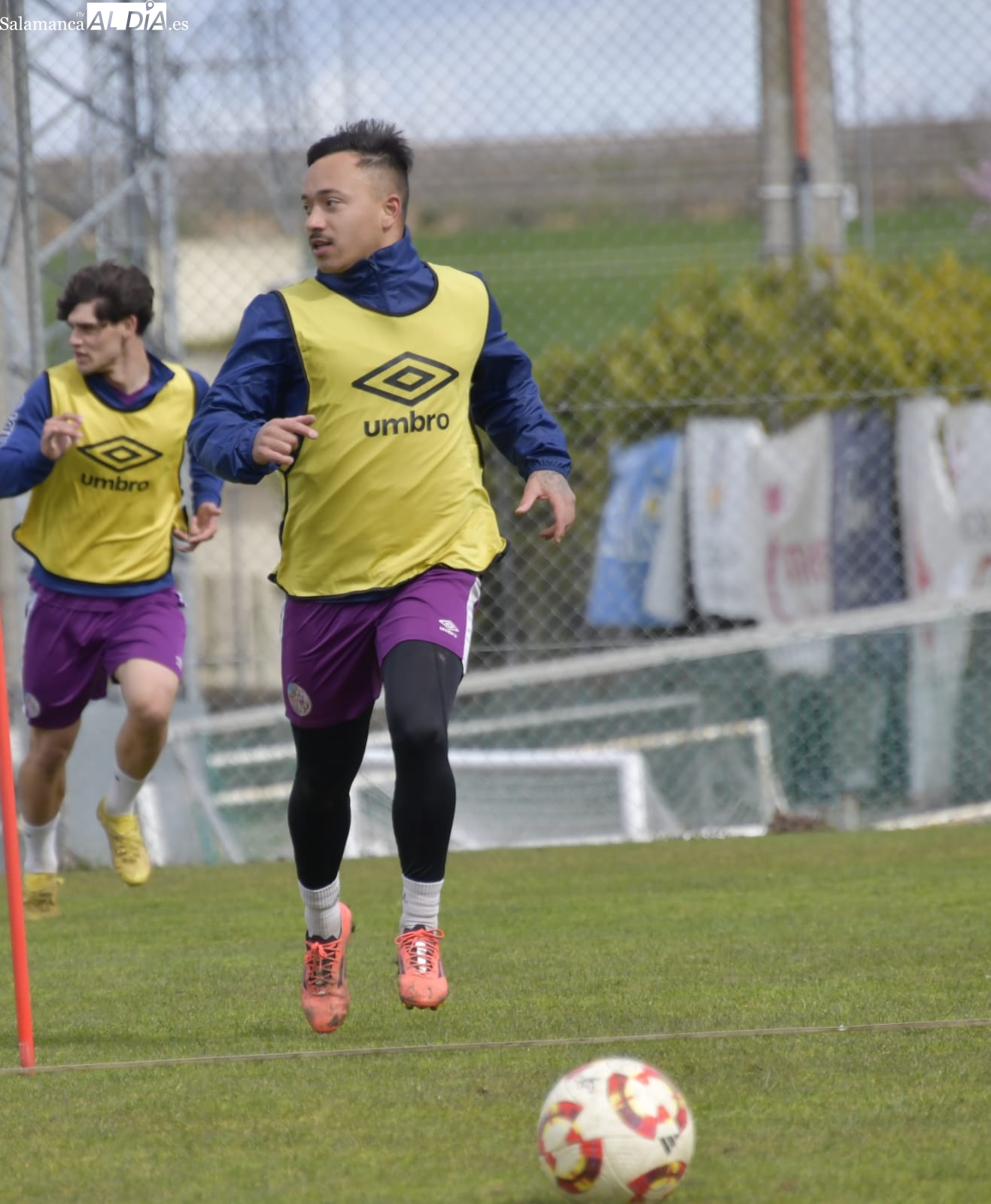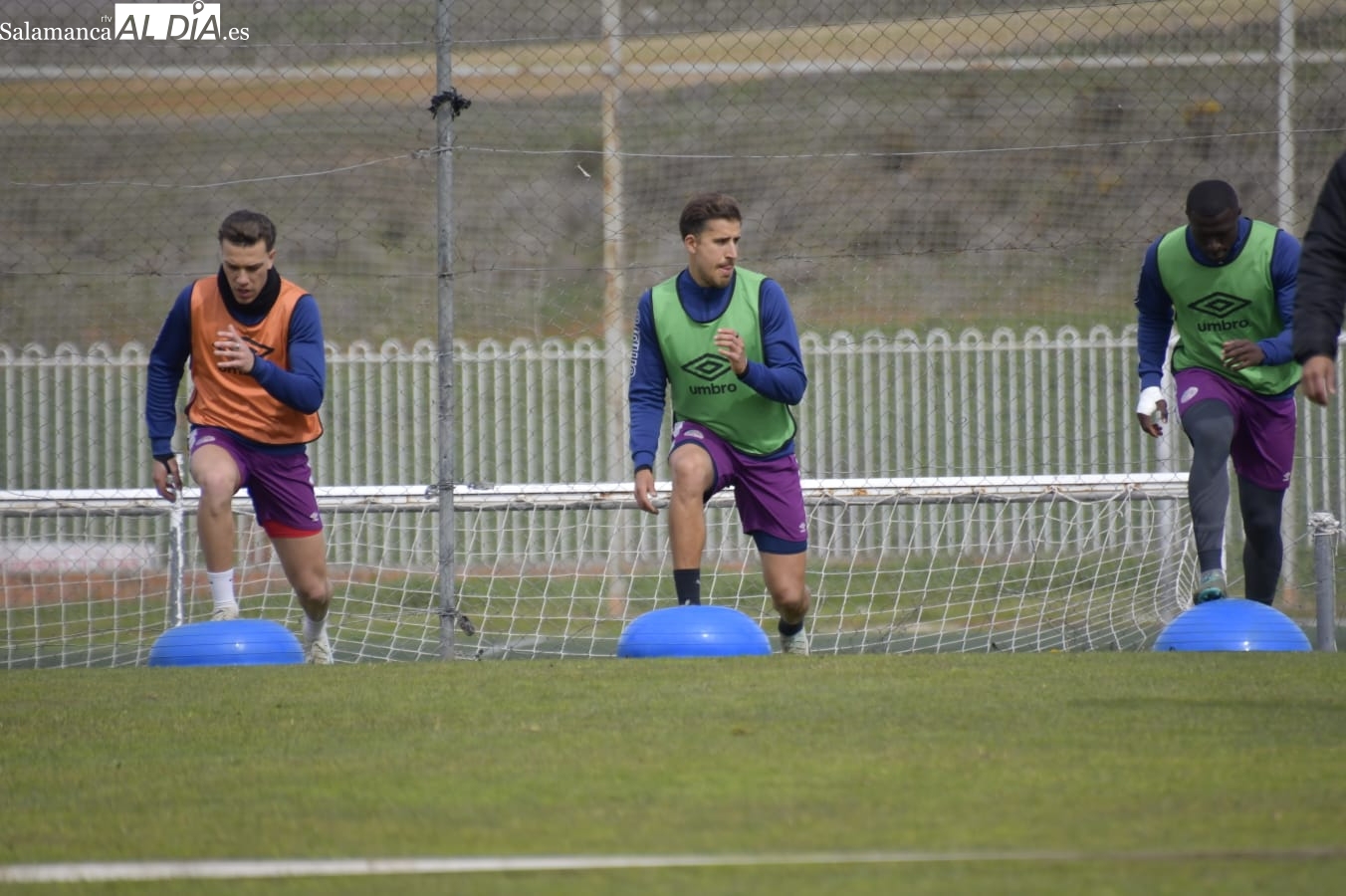 Juancho ha vuelto a los entrenamientos del Salamanca UDS... pero Curro y Emaná siguen lesionados, motivo por el que no se han ejercitado con el resto de sus compañeros en la primera sesión de entrenamiento tras el día de descanso semanal.