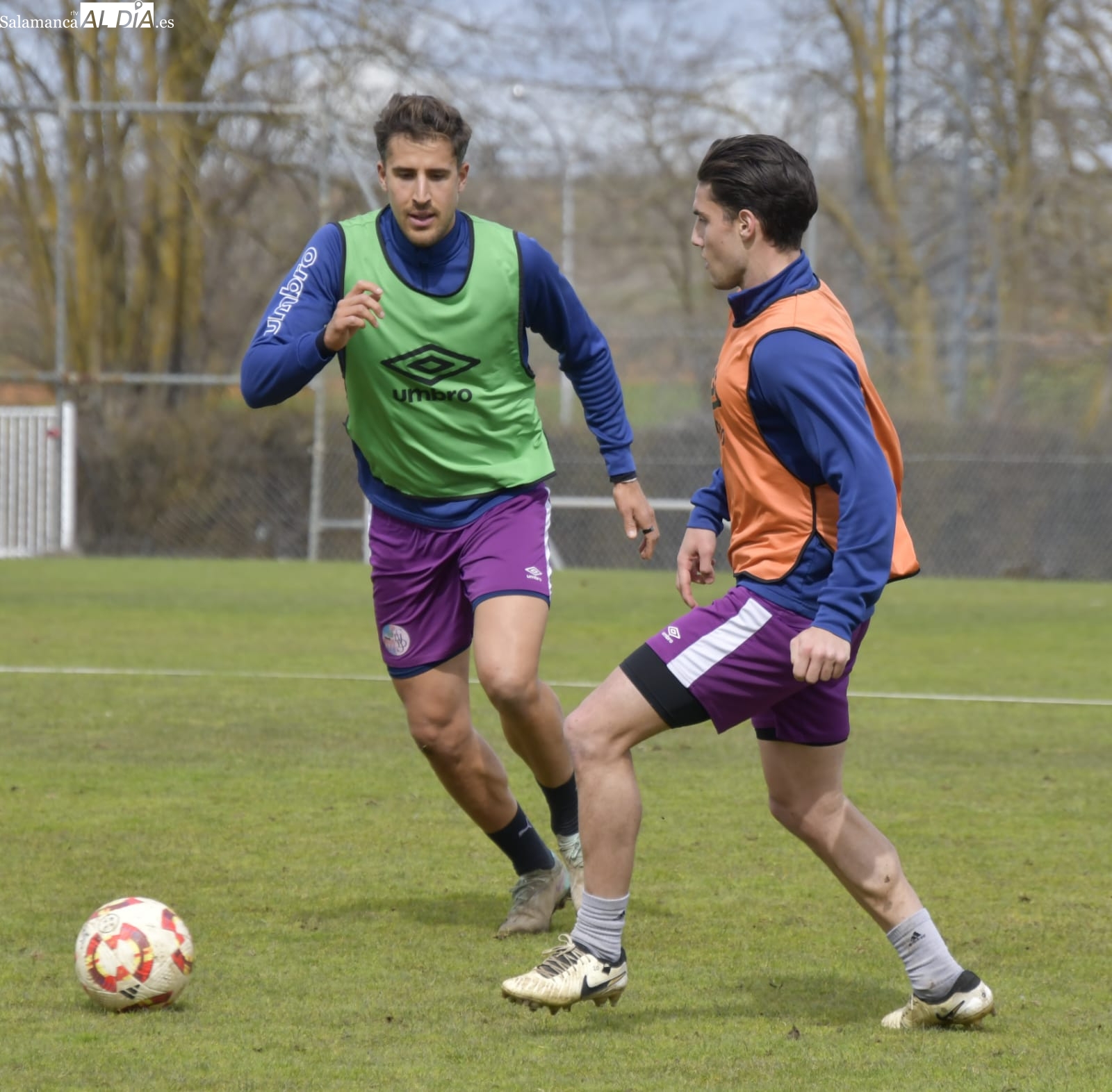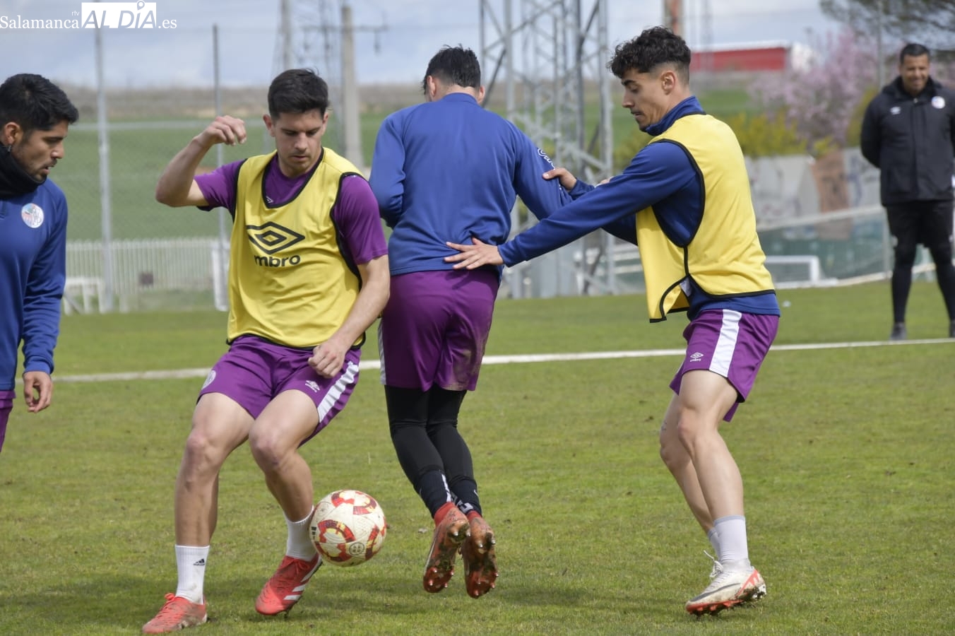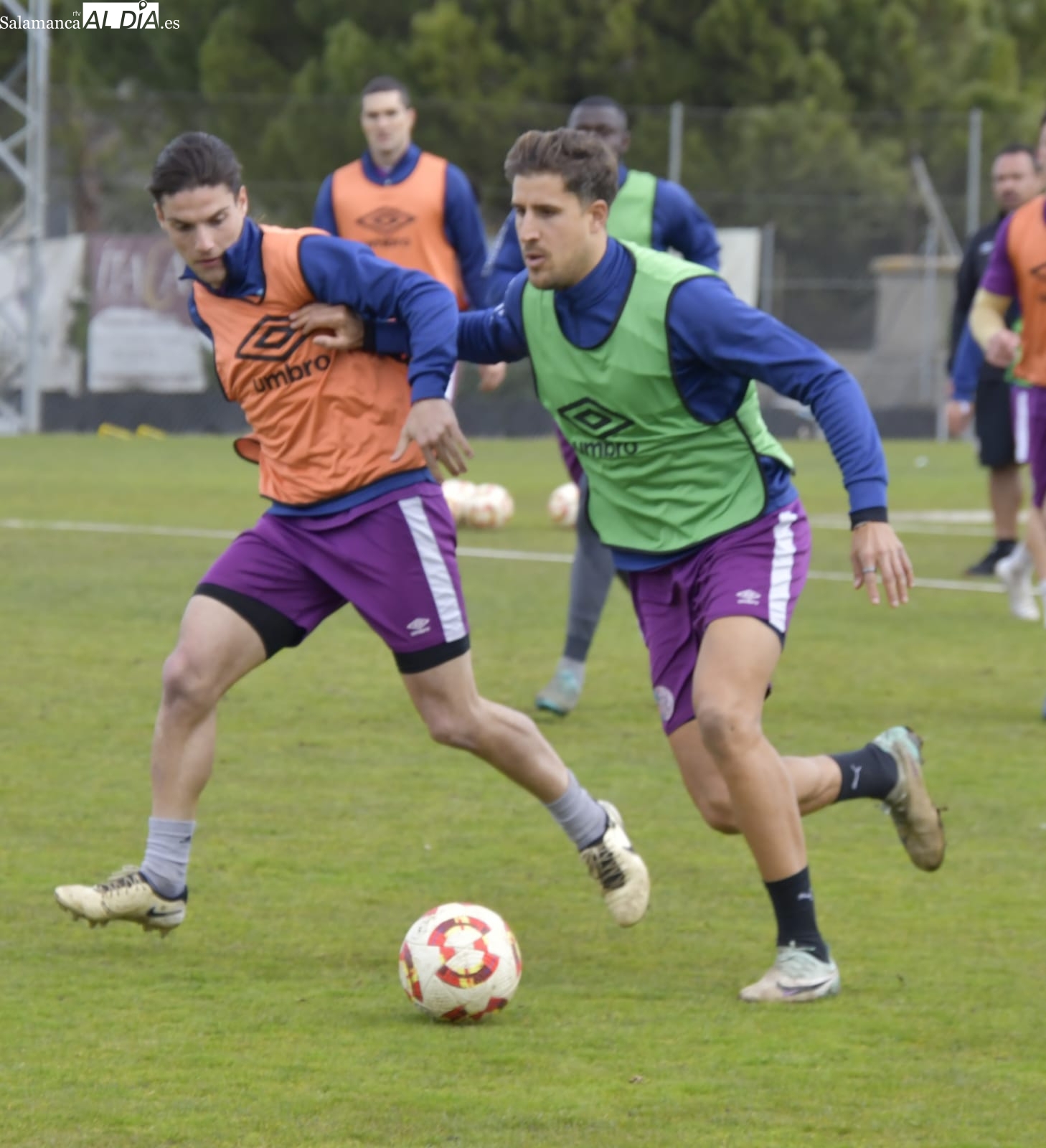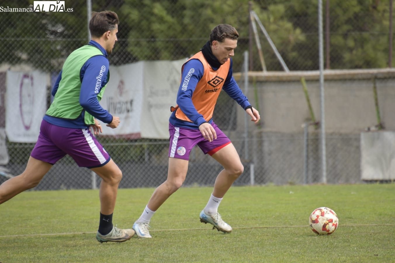 Juancho ha vuelto a los entrenamientos del Salamanca UDS... pero Curro y Emaná siguen lesionados, motivo por el que no se han ejercitado con el resto de sus compañeros en la primera sesión de entrenamiento tras el día de descanso semanal.