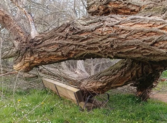 Como se puede ver en la imagen, remitida por un lector, parte de la copa de este árbol ha caído sobre un banco del Parque, en un singular ‘descanso’ que posiblemente ya será ‘eterno’ para el vetusto árbol.