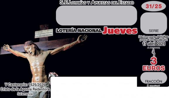 El Cristo de la Agonía Redentora, cuyo quinto centenario se conmemora este año, cobra protagonismo en los boletos