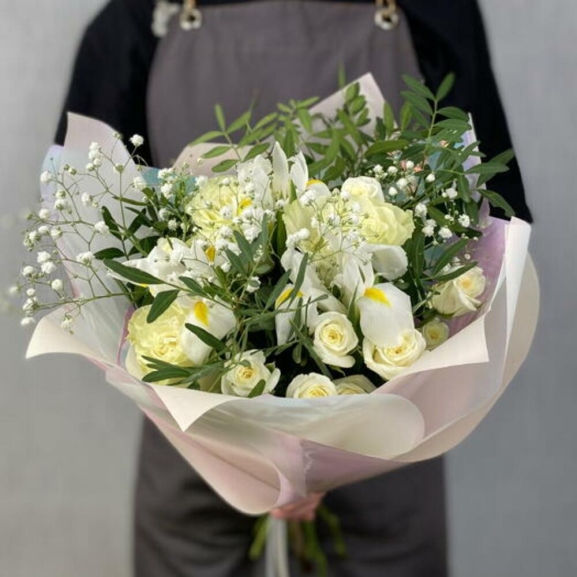 - Ramos de rosas blancas y ligeros toques de verde y para todo el look classico y elegante.
