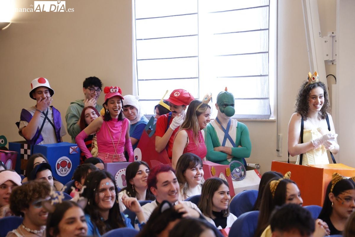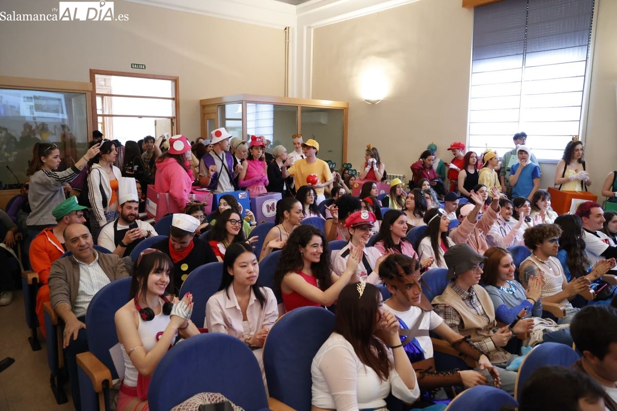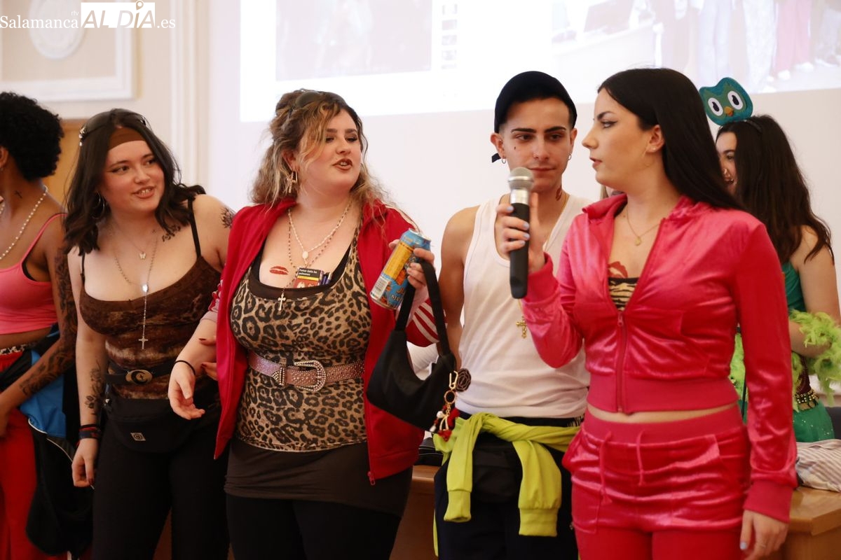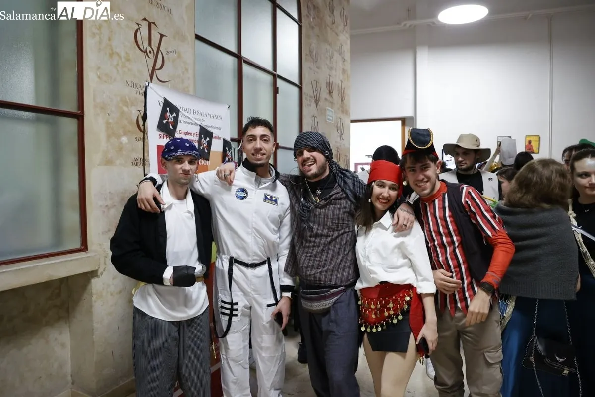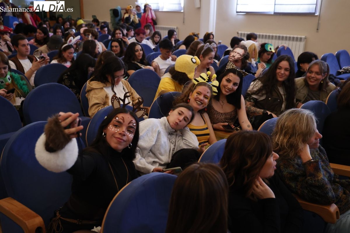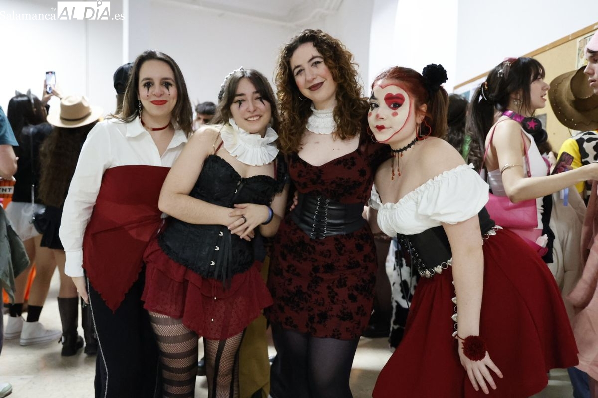Disfraces y buen ambiente en las fiestas de Traducción y Documentación de la Universidad de Salamanca. El sol ha aparecido dejando atrás la lluvia de primeras horas de la mañana y ha permitido a los universitarios disfrutar de su día grande.