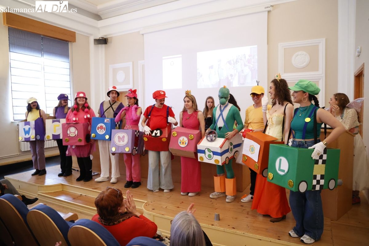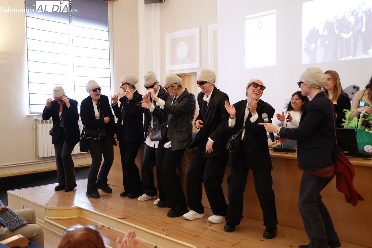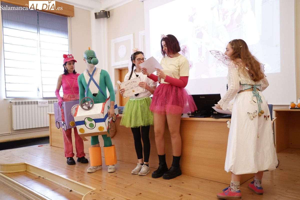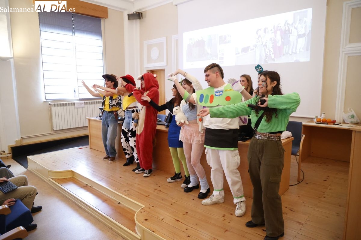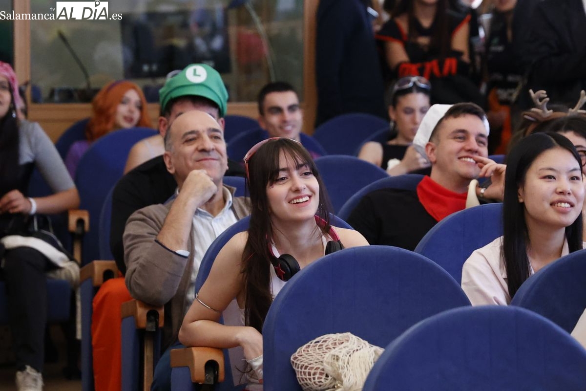 Disfraces y buen ambiente en las fiestas de Traducción y Documentación de la Universidad de Salamanca. El sol ha aparecido dejando atrás la lluvia de primeras horas de la mañana y ha permitido a los universitarios disfrutar de su día grande.
