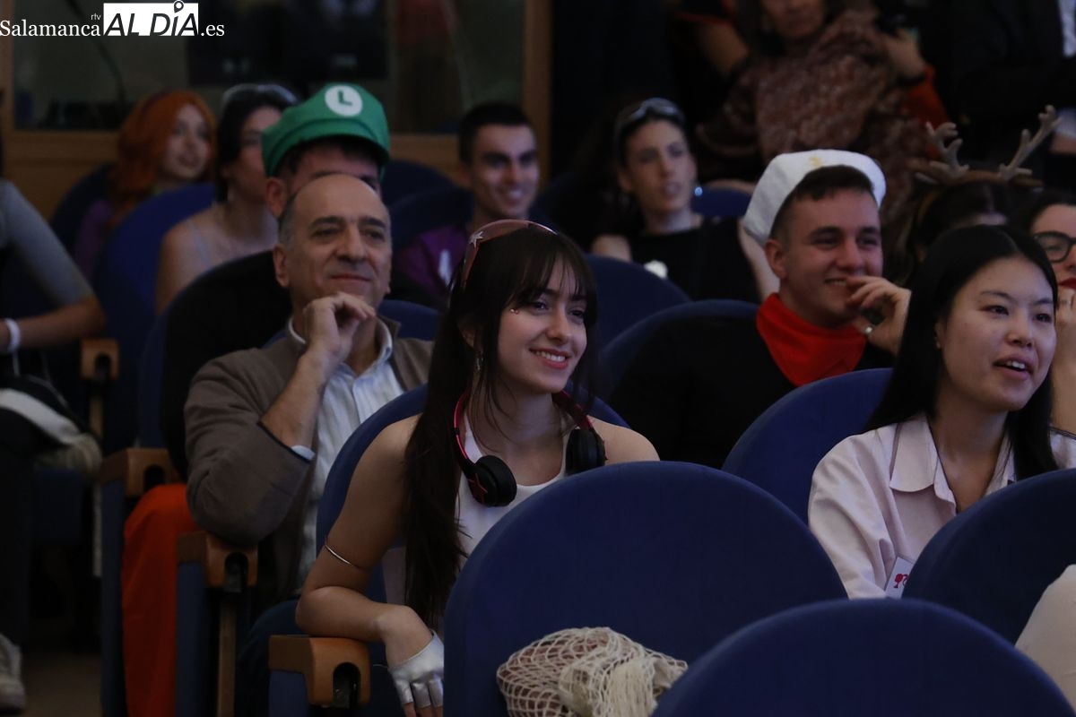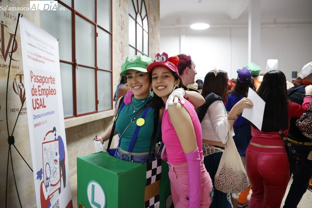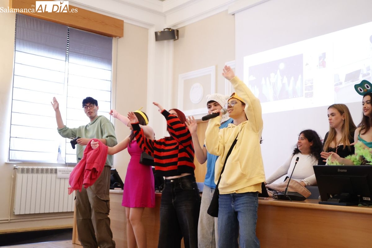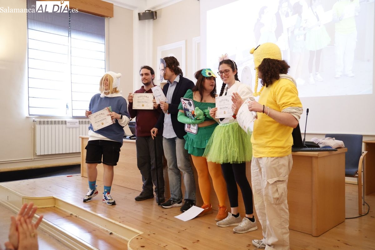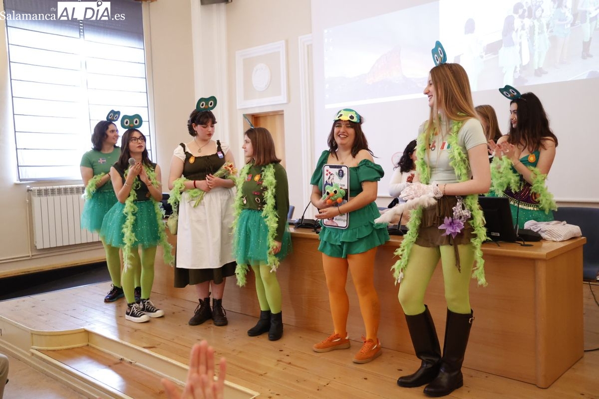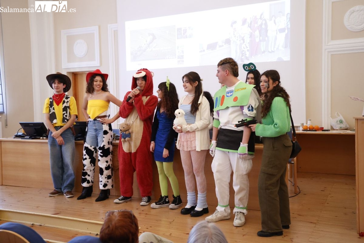 Disfraces y buen ambiente en las fiestas de Traducción y Documentación de la Universidad de Salamanca. El sol ha aparecido dejando atrás la lluvia de primeras horas de la mañana y ha permitido a los universitarios disfrutar de su día grande.