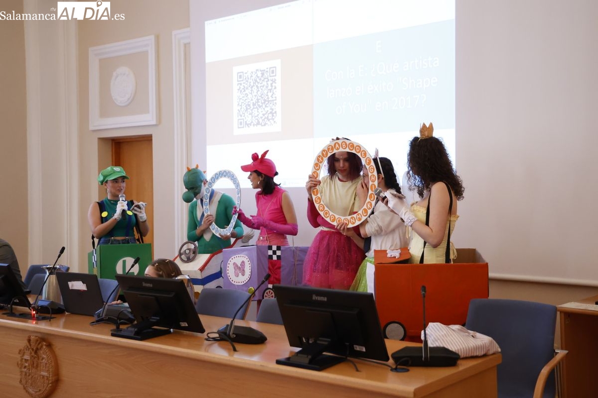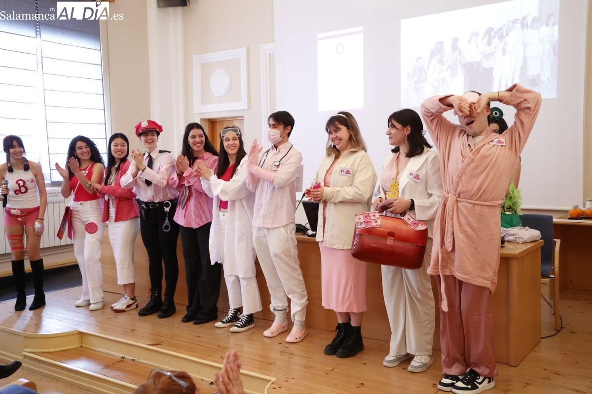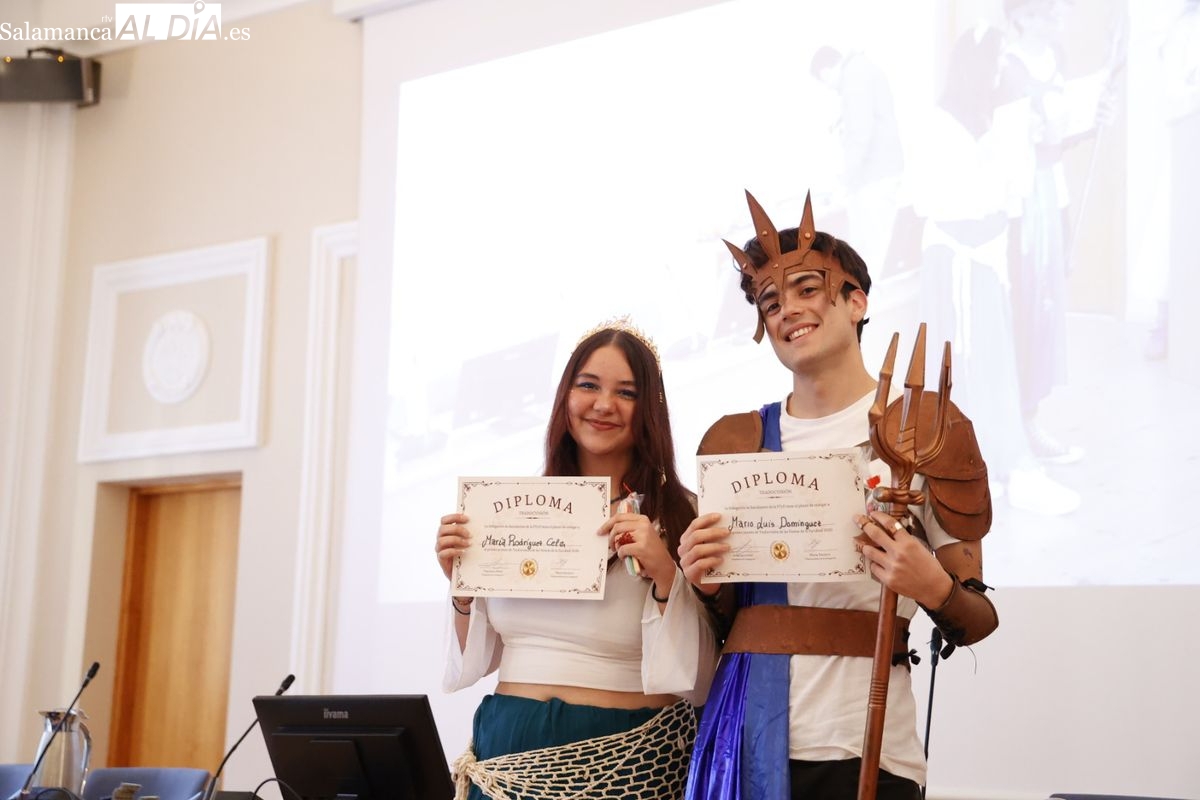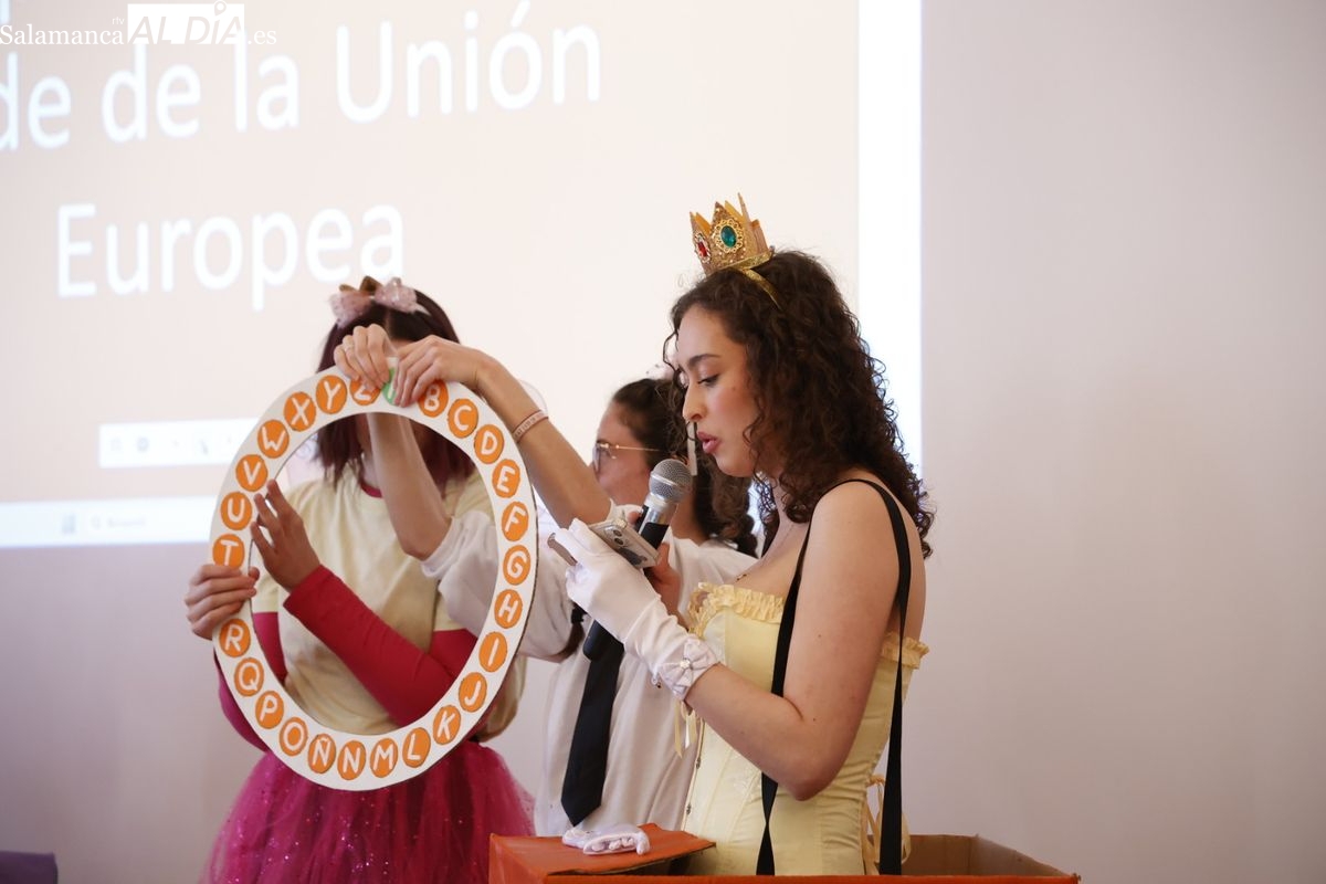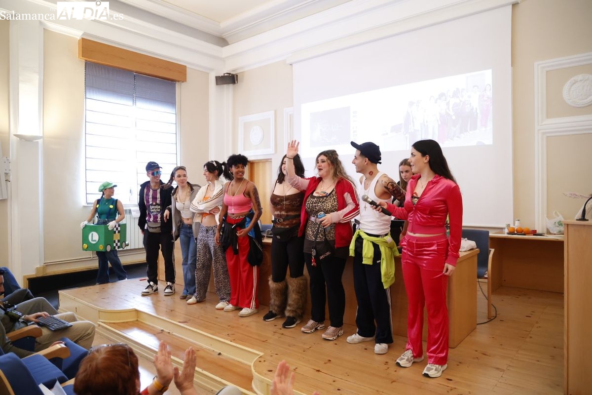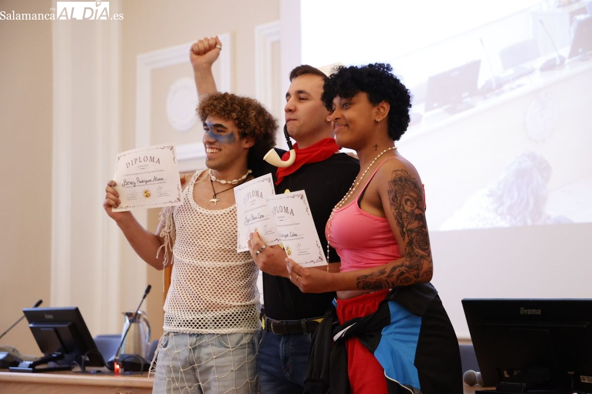 Disfraces y buen ambiente en las fiestas de Traducción y Documentación de la Universidad de Salamanca. El sol ha aparecido dejando atrás la lluvia de primeras horas de la mañana y ha permitido a los universitarios disfrutar de su día grande.