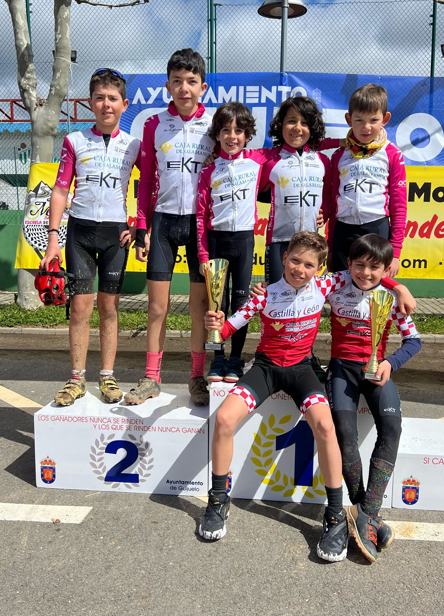 Triple victoria este fin de semana para el equipo Caja Rural de Salamanca – Ekiparte (EKT), formación de escuelas del Club Ciclista Promesal, en las dos pruebas de la Copa CyL de Escuelas de BTT celebradas en Torre del Bierzo y Guijuelo. Enzo García Sánchez, que fue el único representante del equipo en Torre del Bierzo el sábado, se alzó con la victoria en categoría alevín. Misma posición repetiría el domingo en Guijuelo, donde también fue primero Diego Marcos Barco en Principiantes.