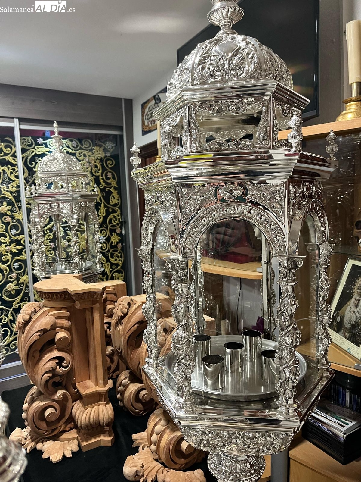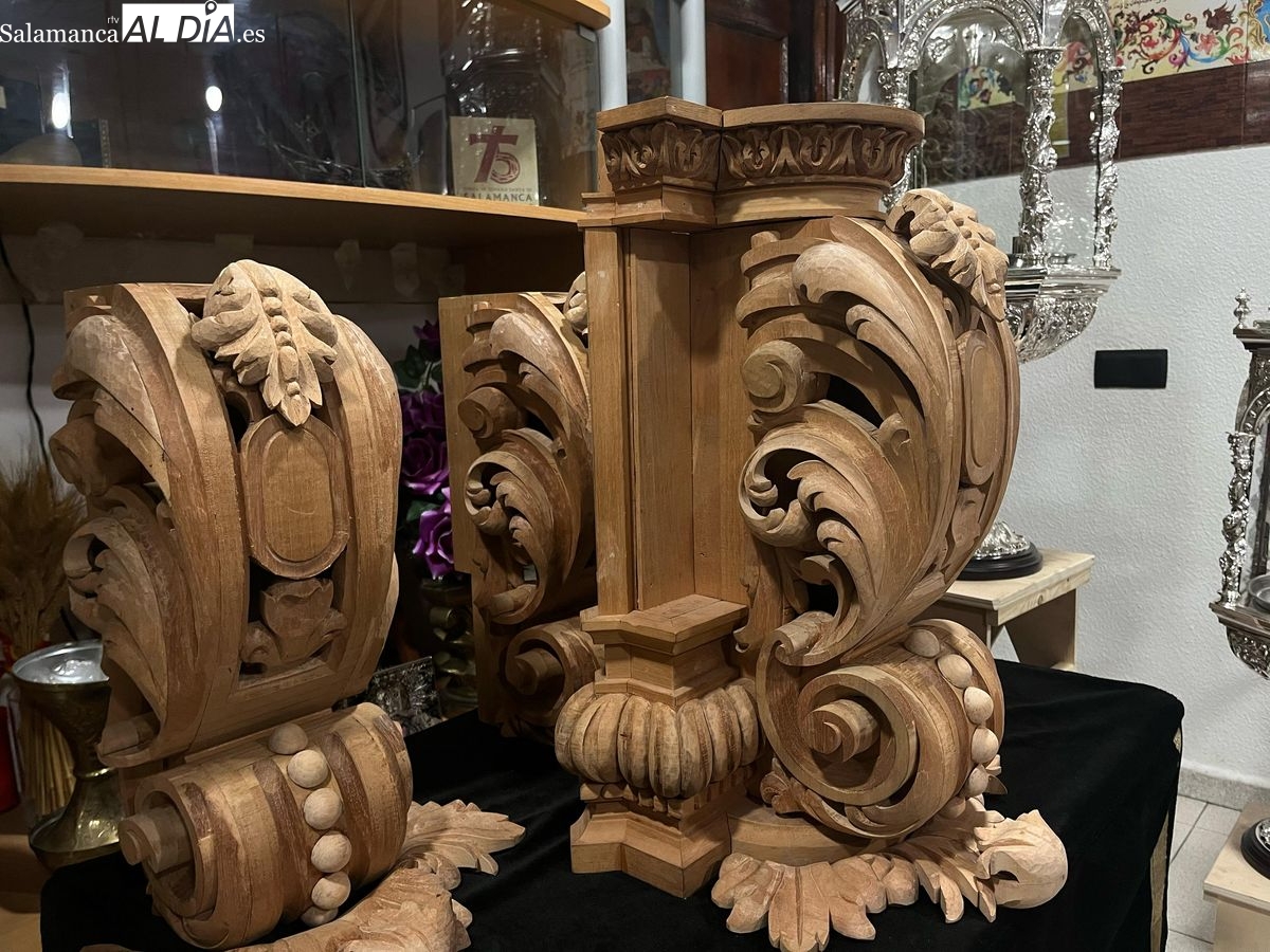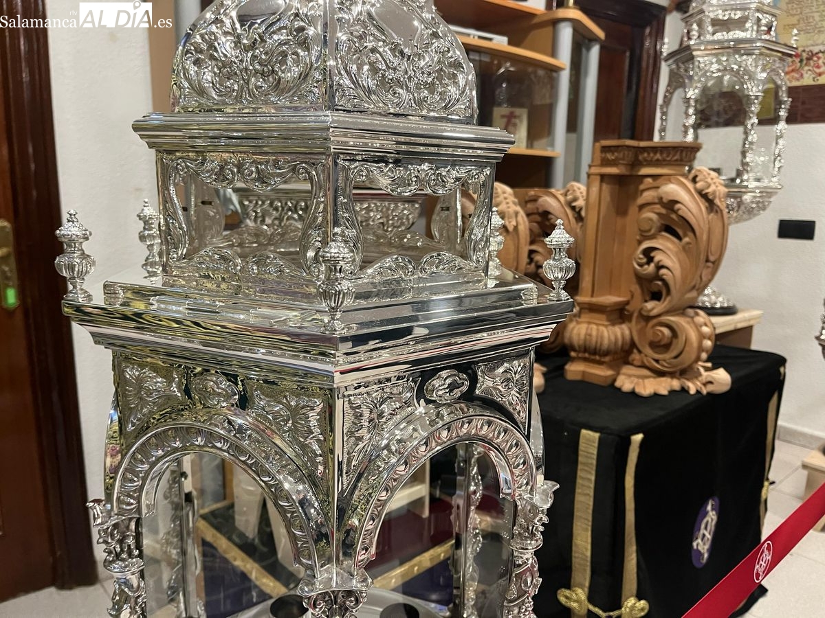 Los esquineros del canasto han sido tallados en madera por David Medina Soto, mientras que los plateados faroles han sido realizados por Orfebrería Orovio de la Torre. Sin duda, dos adquisiciones que engrandecerán la majestuosa talla de Damián Villar y que ya forman parte del patrimonio de la Hermandad Dominicana de Salamanca.