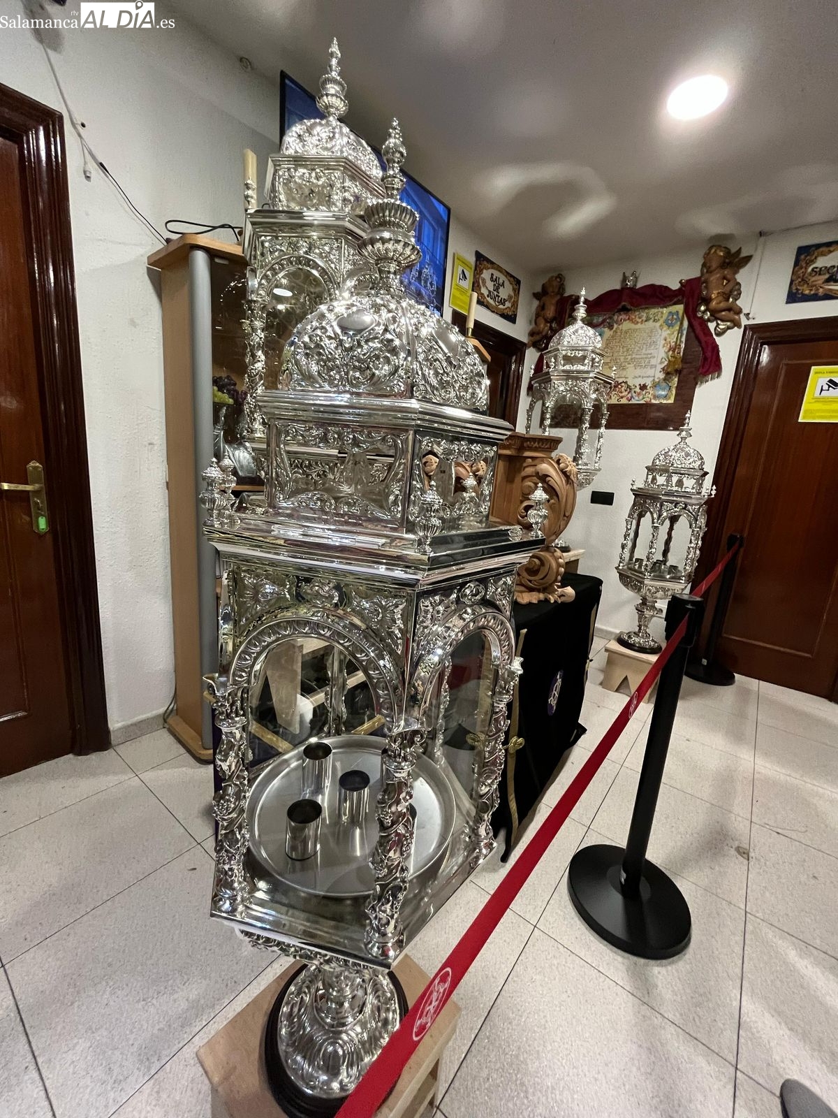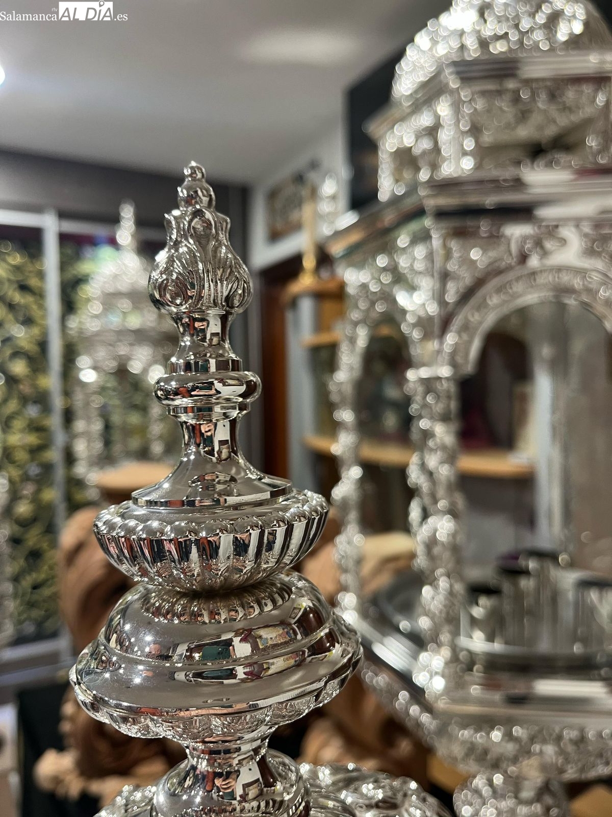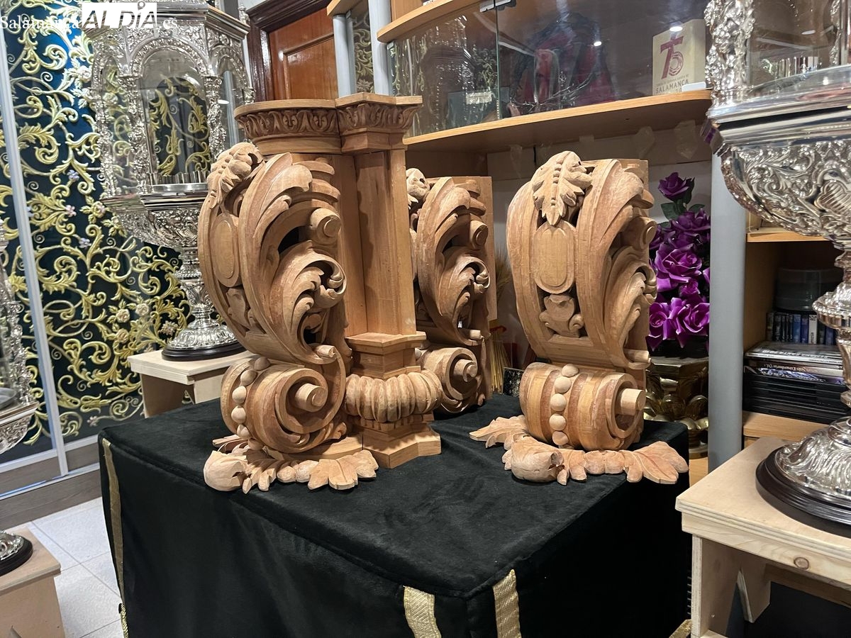 Los esquineros del canasto han sido tallados en madera por David Medina Soto, mientras que los plateados faroles han sido realizados por Orfebrería Orovio de la Torre. Sin duda, dos adquisiciones que engrandecerán la majestuosa talla de Damián Villar y que ya forman parte del patrimonio de la Hermandad Dominicana de Salamanca.