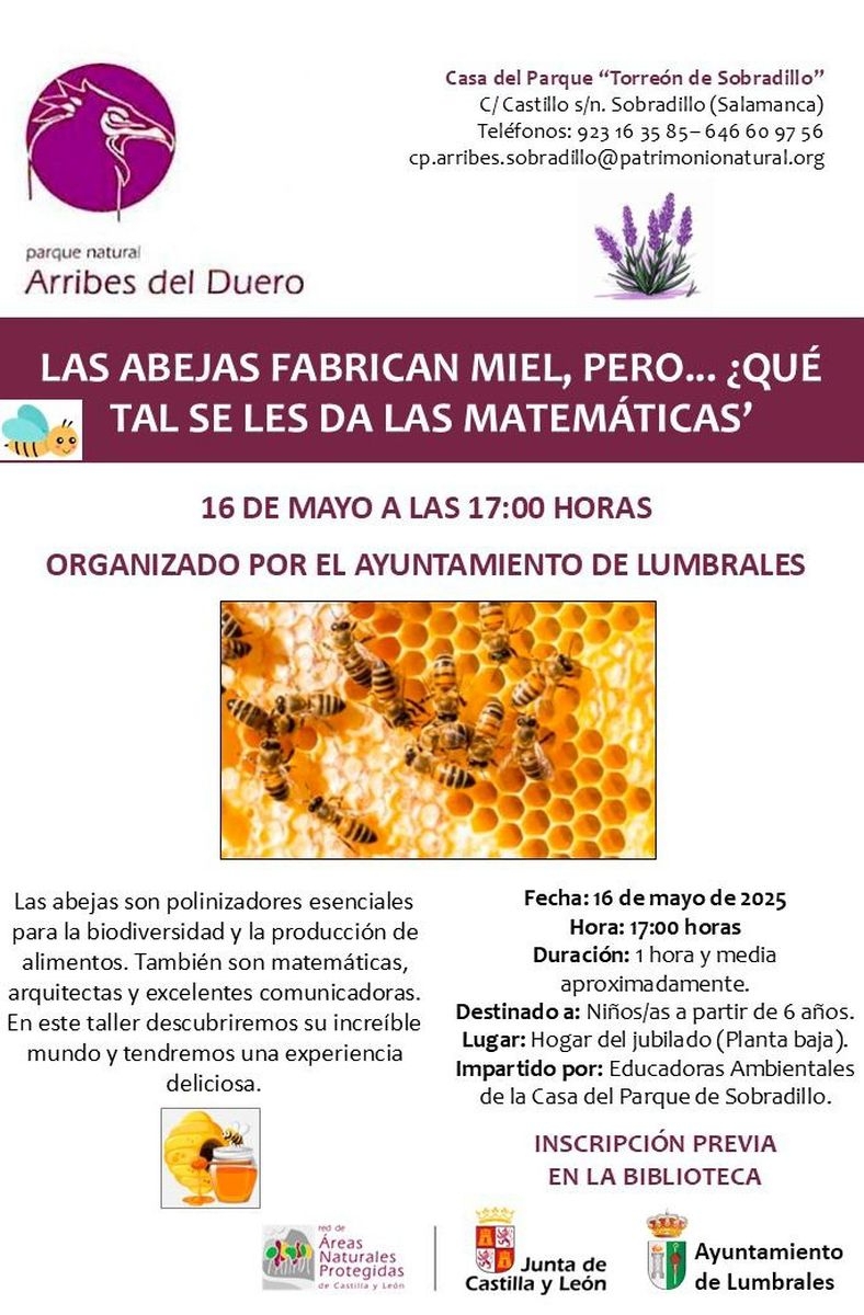 Para el 16 de mayo está programado el taller infantil 'Las abejas fabrican miel, pero.... ¿qué tal se les da las matemáticas?', organizado por el Ayuntamiento en colaboración con la casa del parque Arribes del Duero 'Torreón de Sobradillo'.