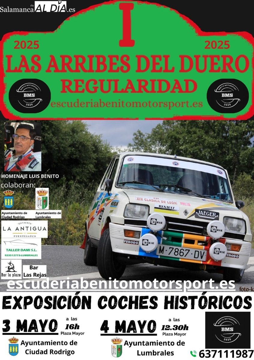 Ya en el mes de mayo, el día 4, Lumbrales acogerá la segunda jornada (la primera tendrá lugar en Ciudad Rodrigo el día 3) del I Arribes del Duero Regularidad', una exposición de coches históricos, de la escudería benitomotorsport, en la que colaboran los ayuntamientos de ambos municipios.