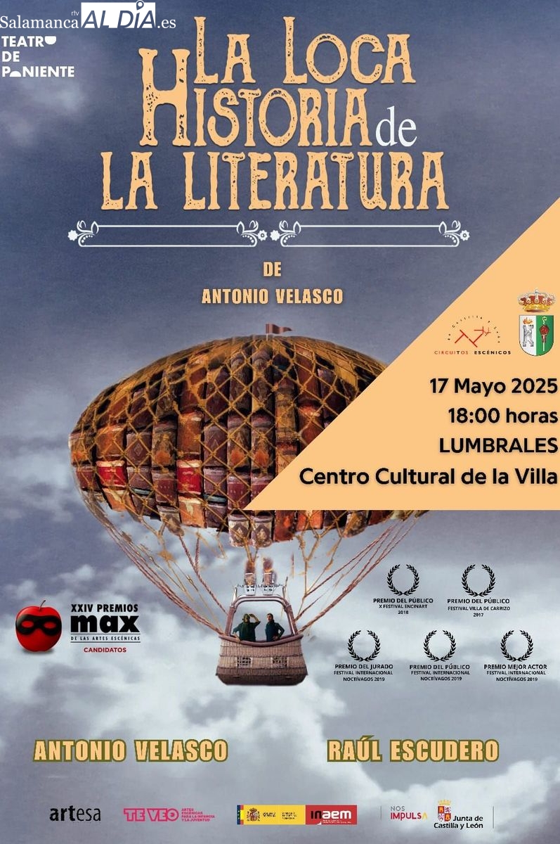 Y por último, el día 17 de mayo se presentará en Lumbrales 'La loca historia de la literatura' una obra teatral de Antonio Velasco que el grupo Teatro de Poniente pondrá en escena en el centro cultural de la villa.