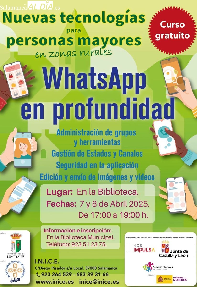 También relacionado con las nuevas tecnologías, la biblioteca de Lumbrales acogerá los días 7 y 8 de abril el curso 'WhatsApp en profundidad' dirigido para las personas mayores. Este curso está organizado por el Ayuntamiento de Lumbrales e INICE, a través del programa Nos Impulsa, de la Junta de Castilla y León.