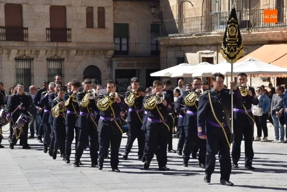 Tras ellos, fueron desfilando –espaciadas, para que se pudiera disfrutar de sus sones- el resto de agrupaciones, en el mismo orden en el que acabaron actuando en el Teatro Nuevo: la Banda de Cornetas y Tambores de la Cofradía de Jesús Amigo de los Niños de Ciudad Rodrigo, la Agrupación Musical La Esperanza de Salamanca, la Banda de Cornetas y Tambores Esperanza de Ciudad Rodrigo, la Agrupación Musical La Expiración de Salamanca, y la Banda de Cornetas y Tambores Pureza de Valladolid.
