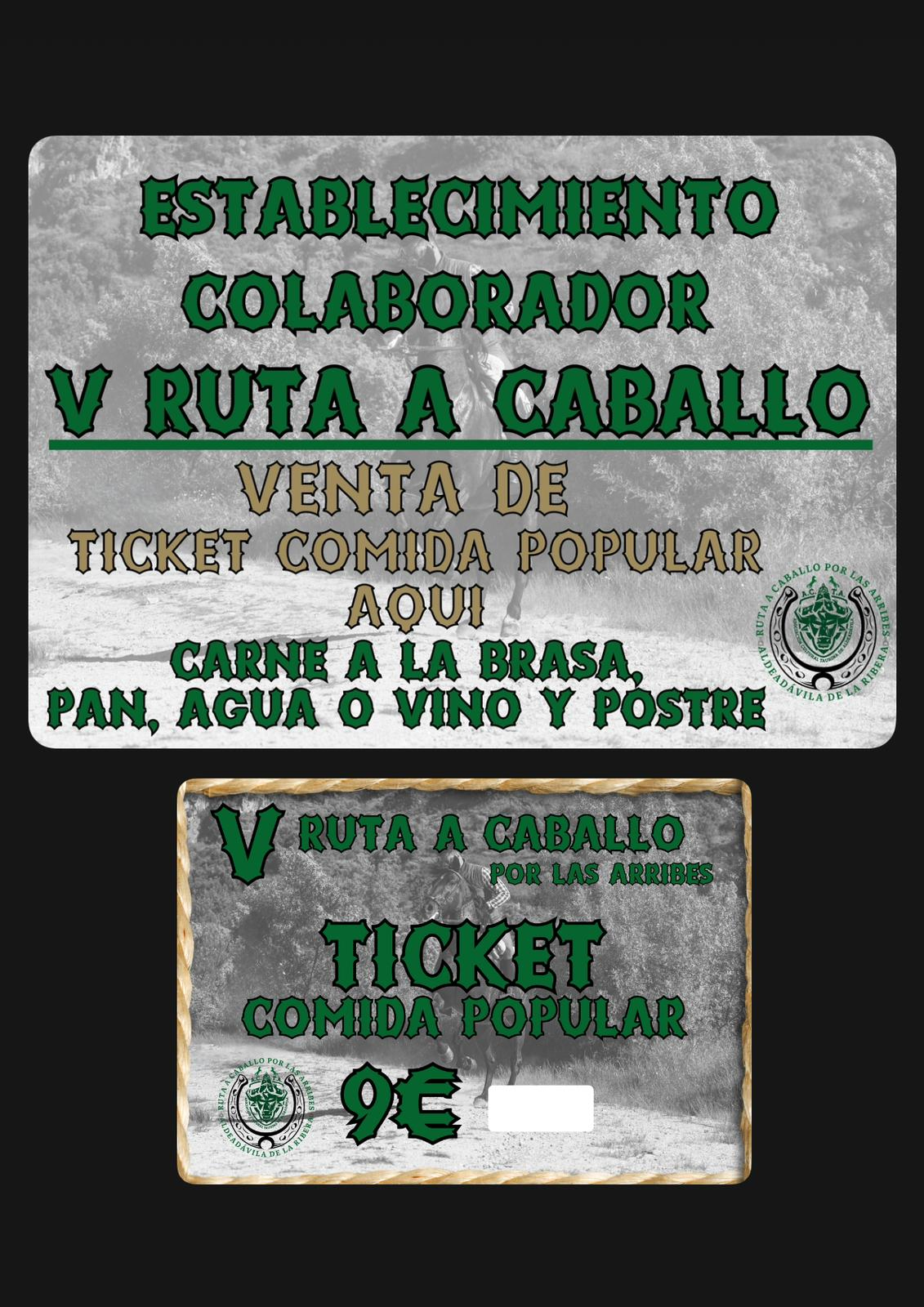 La inscripción para caballistas tiene un coste de 20 euros e incluye la ruta, la comida, el concierto, un obsequio y alguna sorpresa más. El pago debe realizarse en la cuenta de Caja Rural ES6330160303572381177126, indicando como concepto ‘Ruta Caballo nombre y apellidos’. Para el público en general, los tickets para la comida popular tienen un precio de 9 euros y pueden adquirirse en la Oficina de Turismo y establecimientos colaboradores.