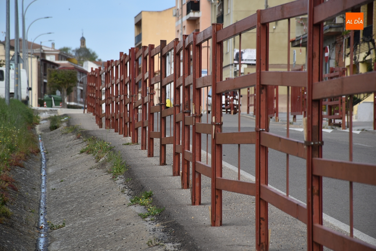 Los operarios municipales encargados de la tarea estuvieron en la mañana del martes retirando las correspondientes al viaducto que pasa por encima de la A-62, eliminando así uno de los puntos donde generan más inconvenientes al tráfico rodado, al provocar el estrechamiento de la calzada.