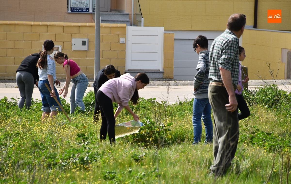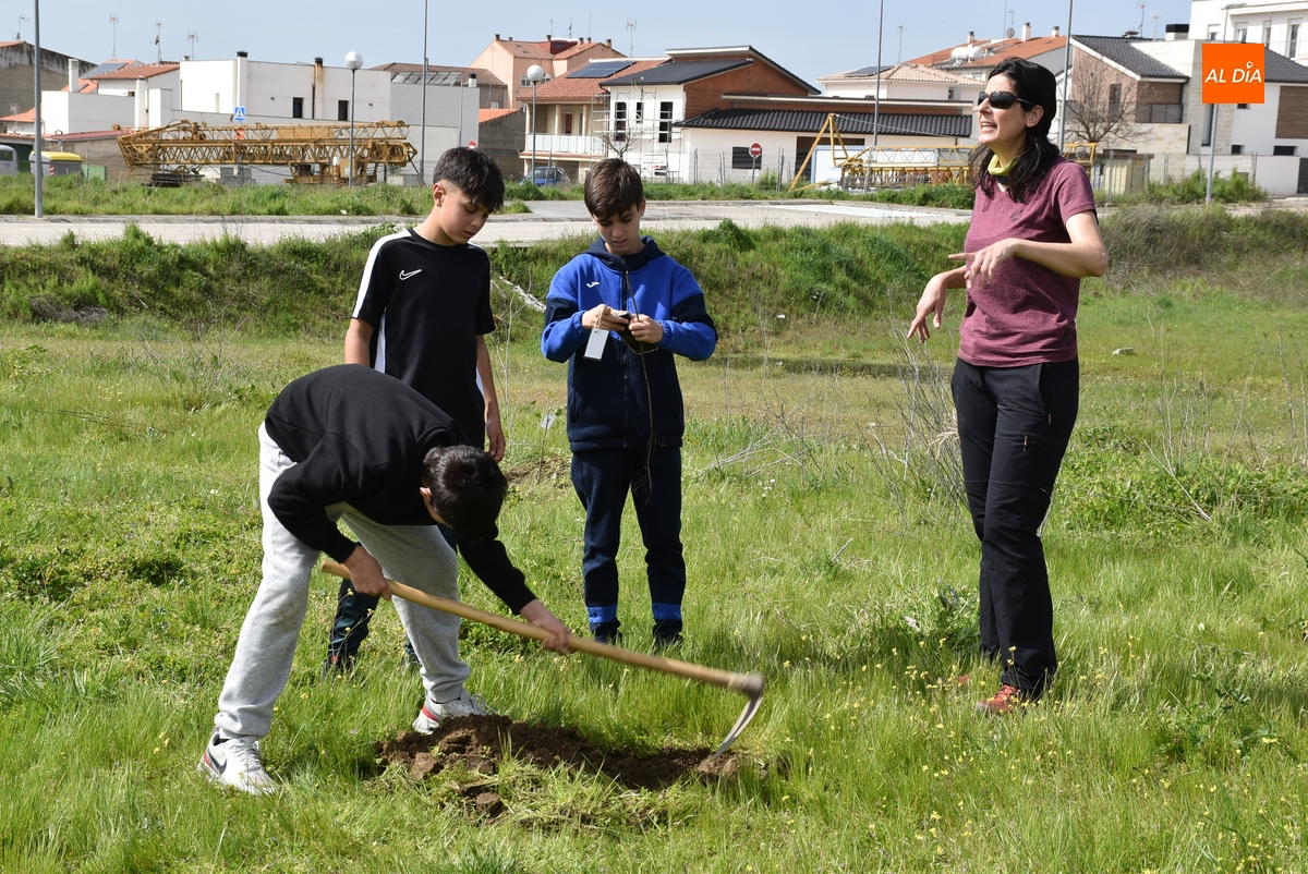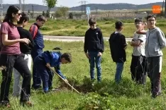 Los alumnos realizaron el proceso completo de plantación, empezando por cavar la tierra para abrir los huecos oportunos para ir introduciendo los plantones, que acabaron regando aprovechando una acumulación de agua en las inmediaciones producto de las últimas lluvias. En cada uno de los plantones ha sido situada una etiqueta identificativa de quién la ha plantado.