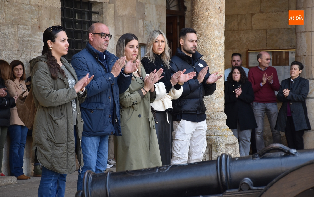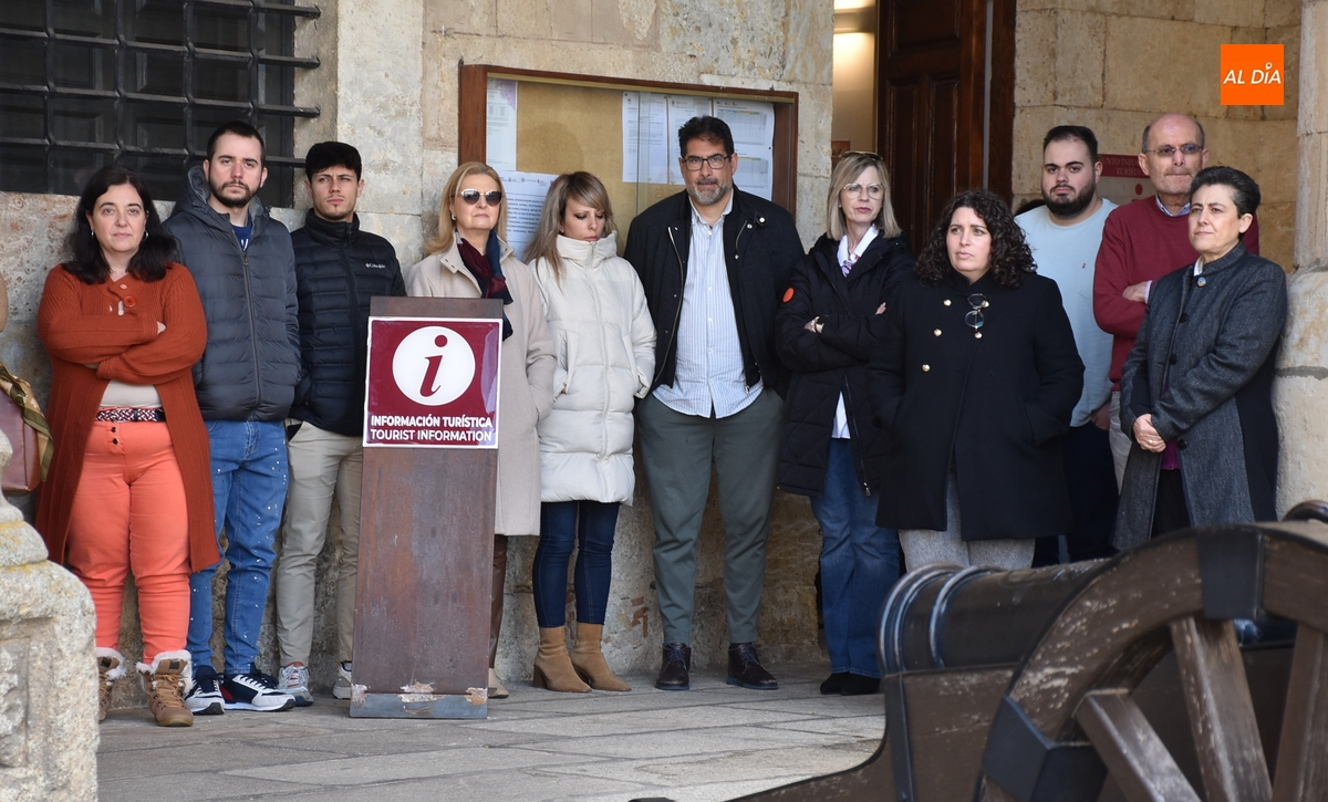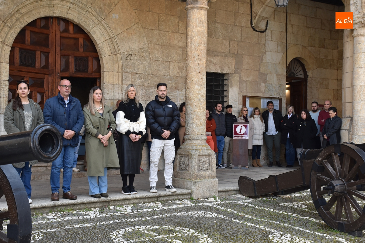 Miembros de la Corporación Municipal y trabajadores del Ayuntamiento de Ciudad Rodrigo guardaron un minuto de silencio al mediodía del martes en los soportales de la Casa Consistorial en señal de duelo por el fallecimiento en la jornada del lunes de cinco mineros en una explosión en una mina de Asturias.