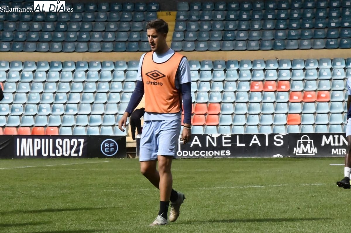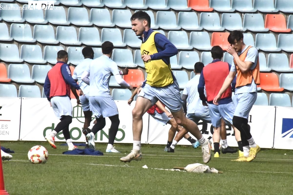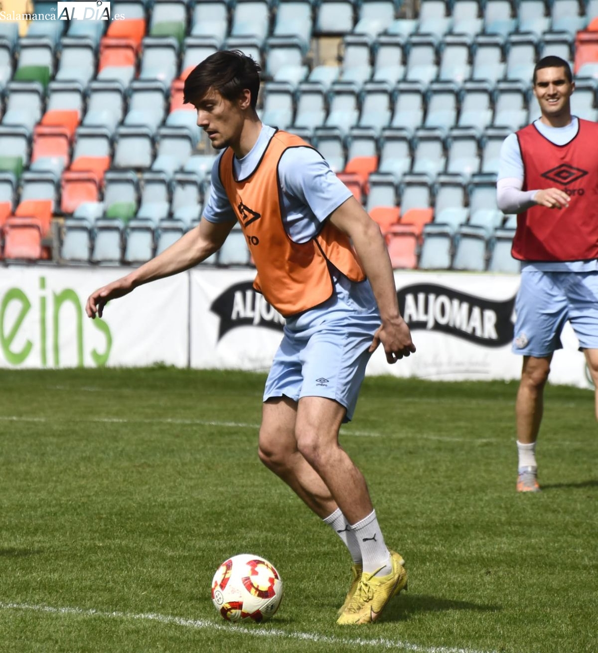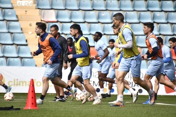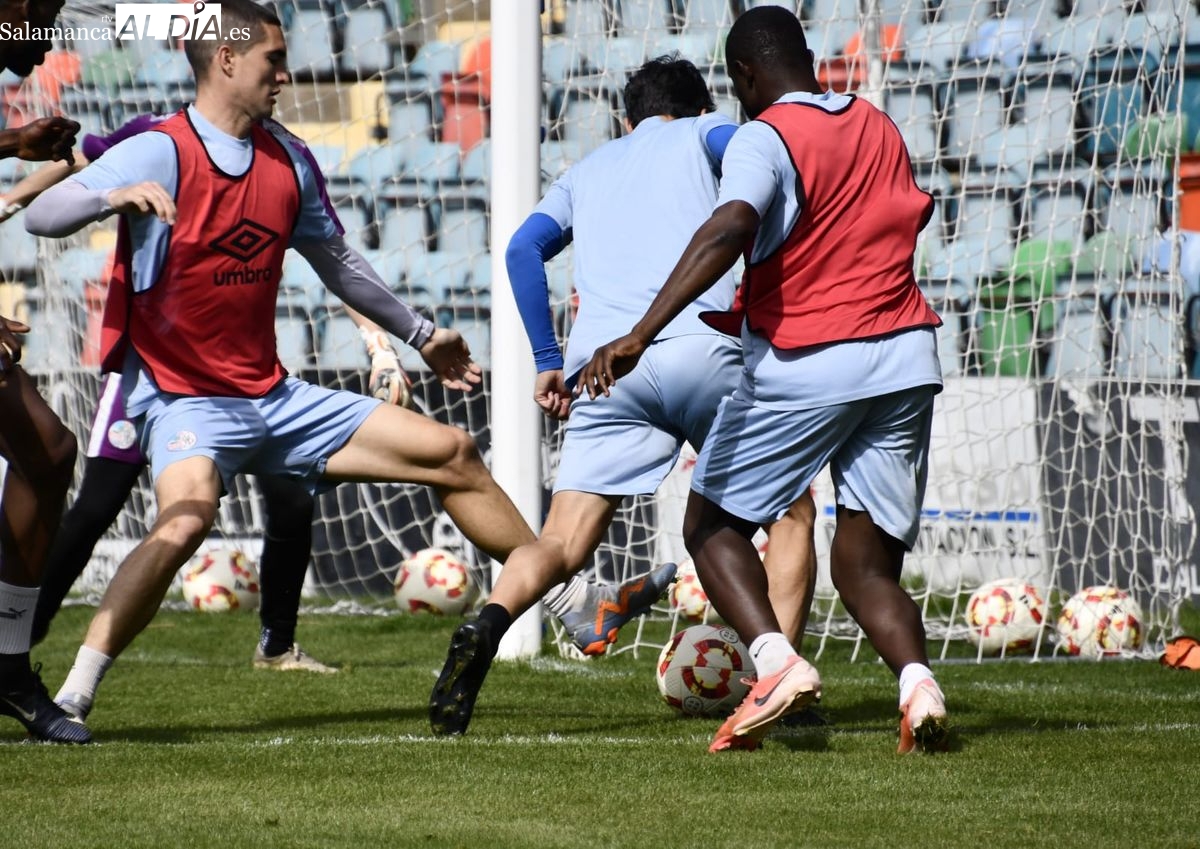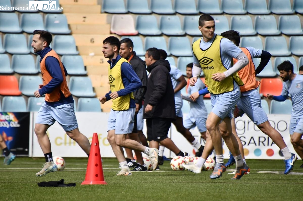 Óscar Lorenzo y Jon Villanueva, lesionados en el encuentro del fin de semana, han sido los únicos ausentes este martes. La sesión de entrenamiento del Salamanca UDS ha incluído tareas en espacios reducidos y varios partidillos con limitación de toques para el equipo poseedor del balón.