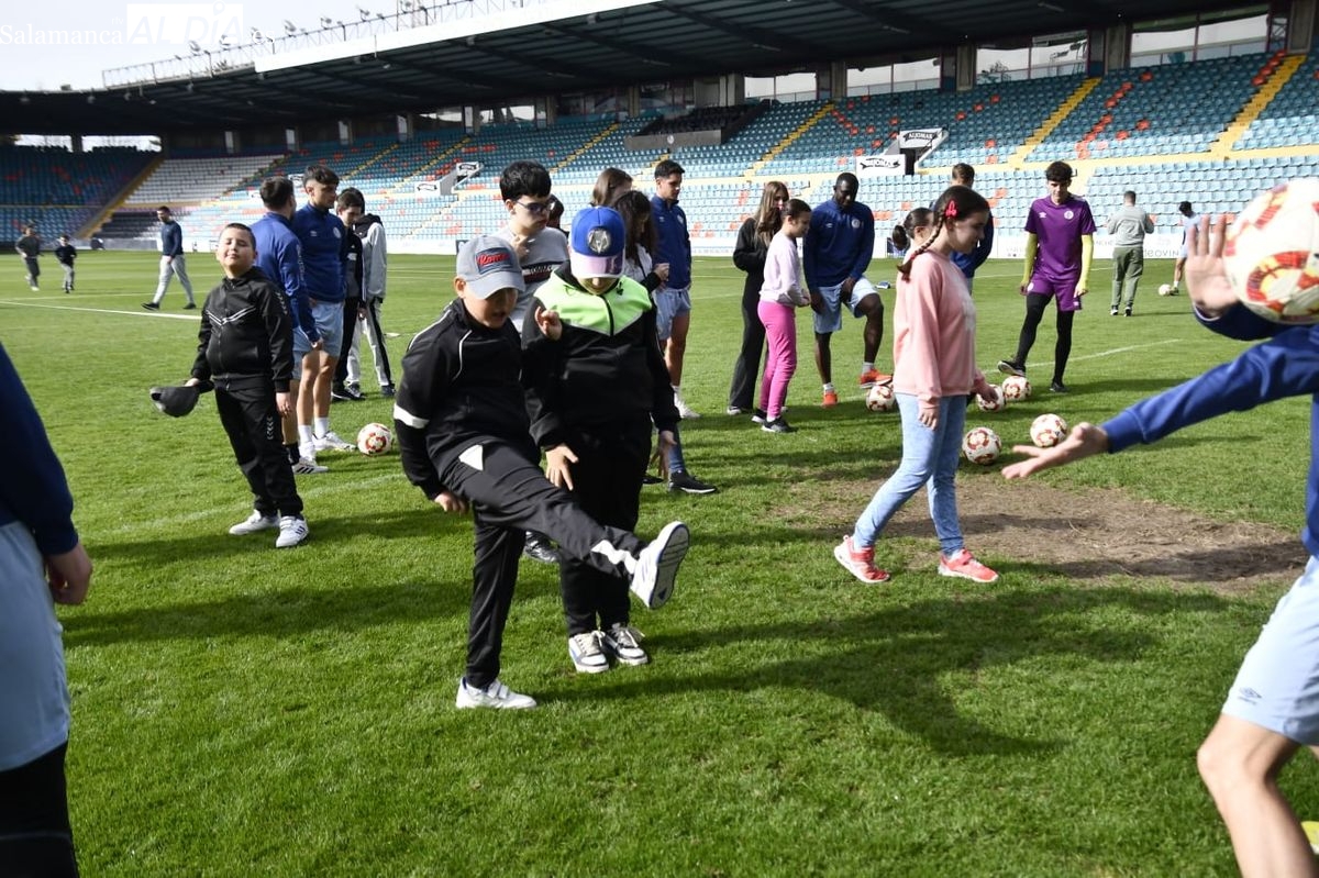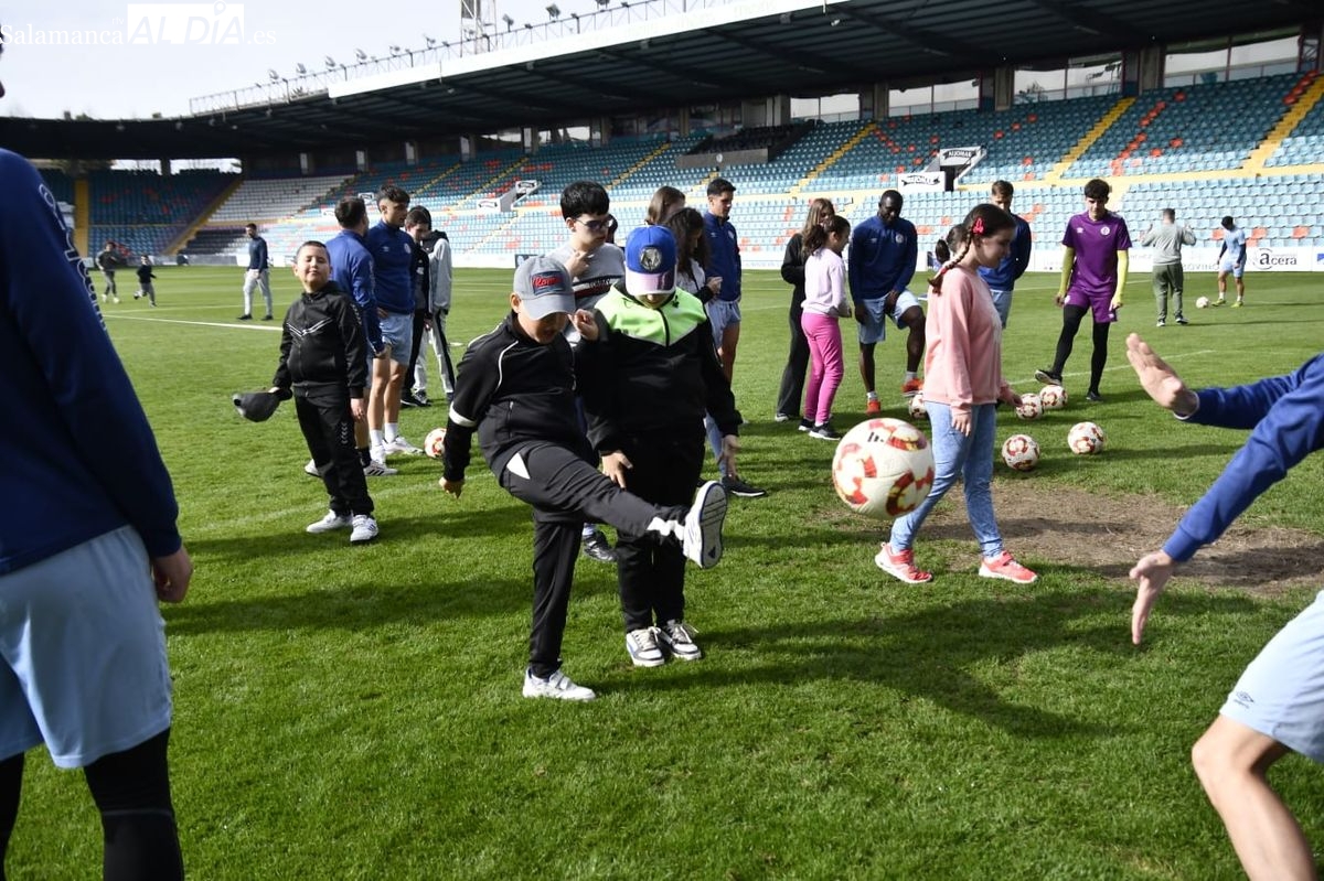 La visita permitió a los menores conocer las instalaciones del club salmantino, presenciar un entrenamiento adaptado e interactuar directamente con los futbolistas, quienes mostraron su lado más cercano y humano con los jóvenes visitantes.