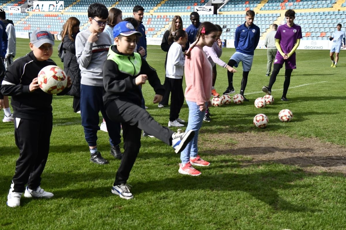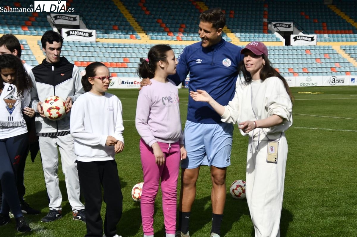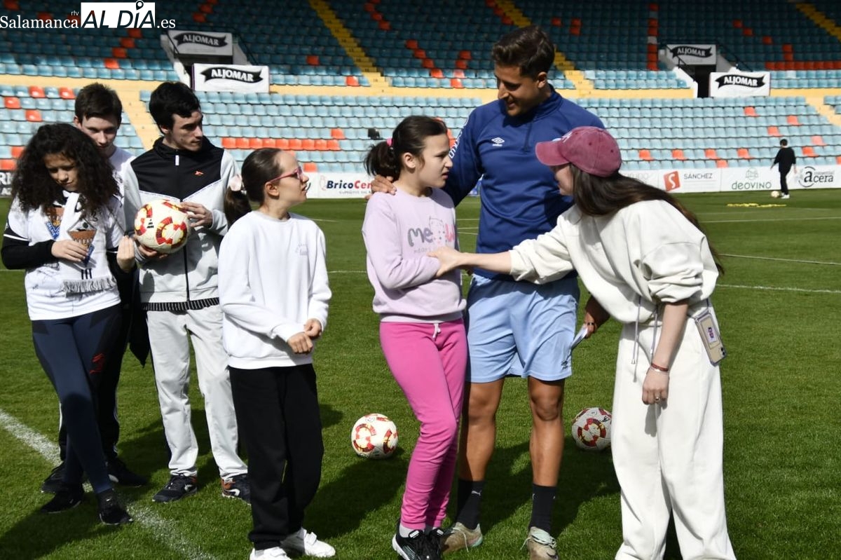 El estadio Helmántico se transformó esta mañana en un espacio de inclusión, aprendizaje y diversión para los alumnos del Centro de Educación Especial La Cañada, quienes compartieron una jornada especial con los jugadores y técnicos del Salamanca UDS. Esta iniciativa se enmarca dentro de los actos conmemorativos por el Día Mundial del Autismo, que se celebra mañana miércoles 2 de abril.