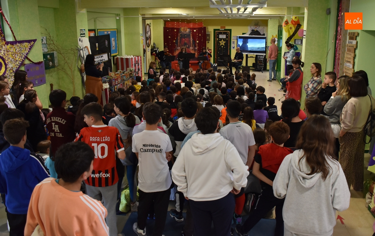 El Colegio Miróbriga arrancó las Jornadas en la última hora lectiva del viernes, en la que se acercaron al centro varios integrantes del grupo Astrolabio, que ofrecieron un doble recital en el hall (primero para alumnos de Educación Infantil y 1º de Educación Primaria; y posteriormente para los alumnos de 2º a 6º de Primaria).