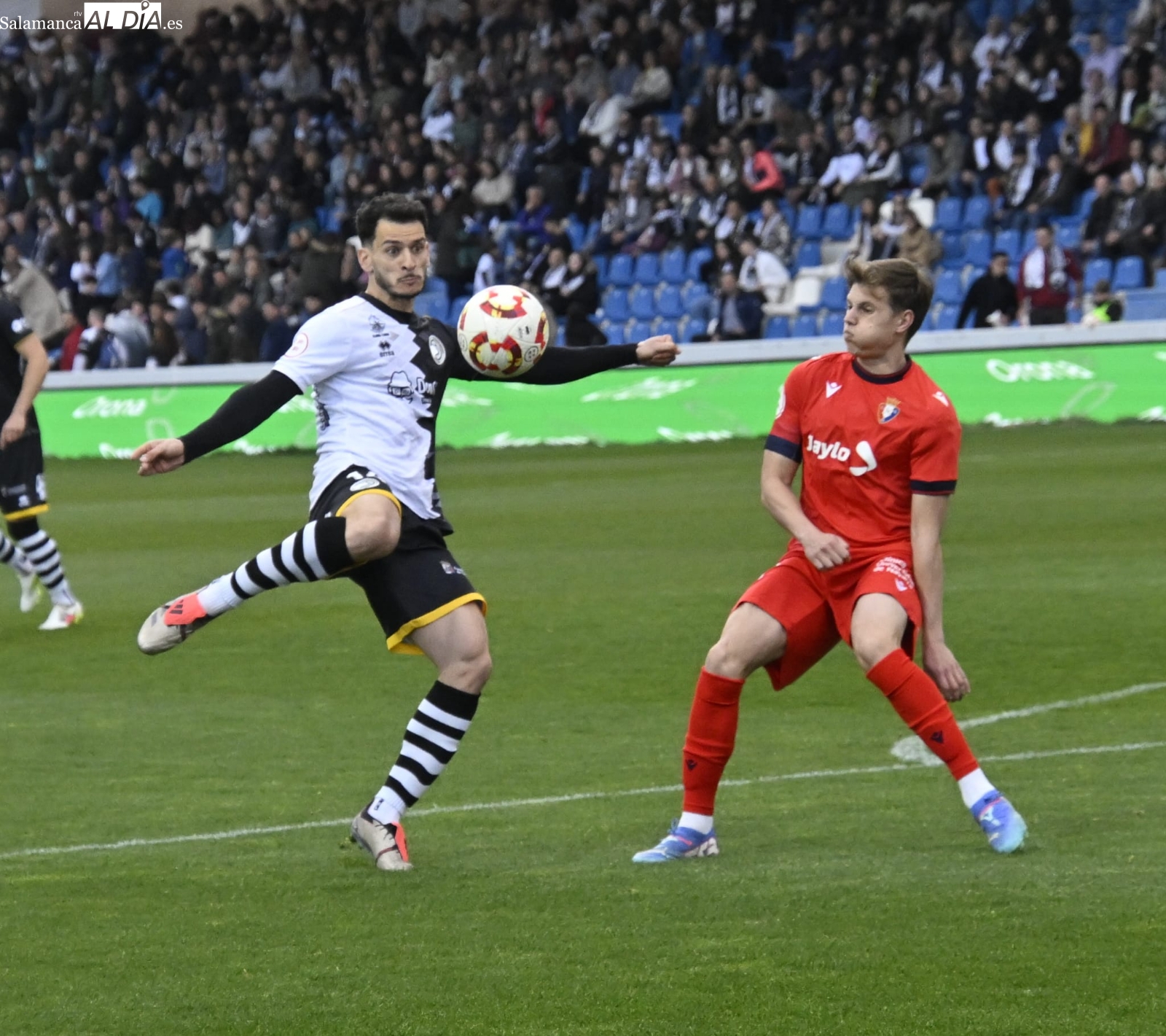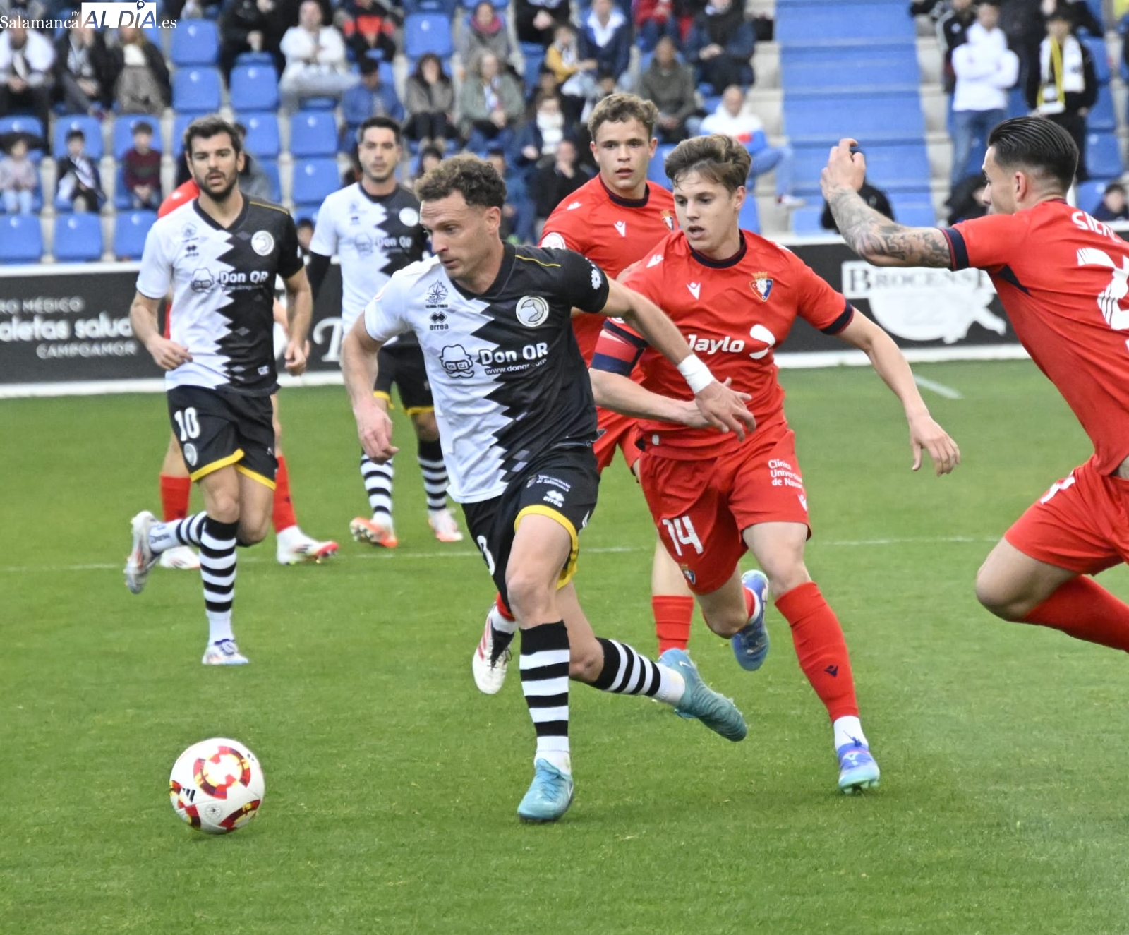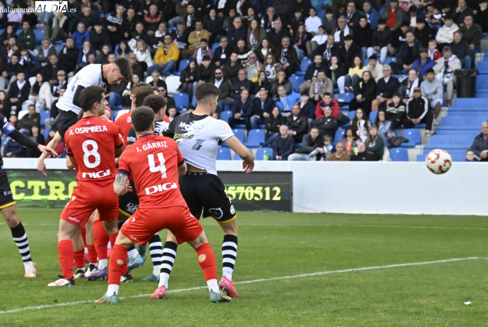 Por su parte, los charros han salido fuertes al campo con varias llegadas de peligro, pero la primera oportunidad clara la ha tenido Lumbreras, que ha tocado con la puntera un pase desde línea de fondo y ha hecho esforzarse al máximo a Iván Martínez, que ha metido una gran mano para evitar males mayores en el minuto 8 de contienda.