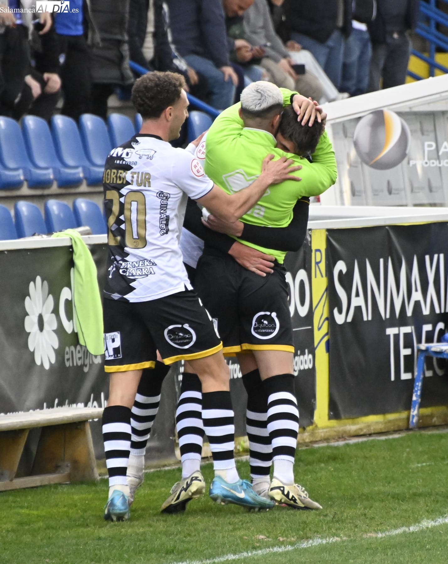 Sin embargo, el premio gordo se lo ha llevado Unionistas pasado el cuarto de hora. Pau Martínez ha botado un córner desde el perfil diestro y Carlos García ha hecho como Puyol contra Alemania en el Mundial de 2010 con un vuelo sin motor para cabecear al fondo de las mallas. 1-0 y remate impecable del central para adelantar a los blanquinegros en casa.